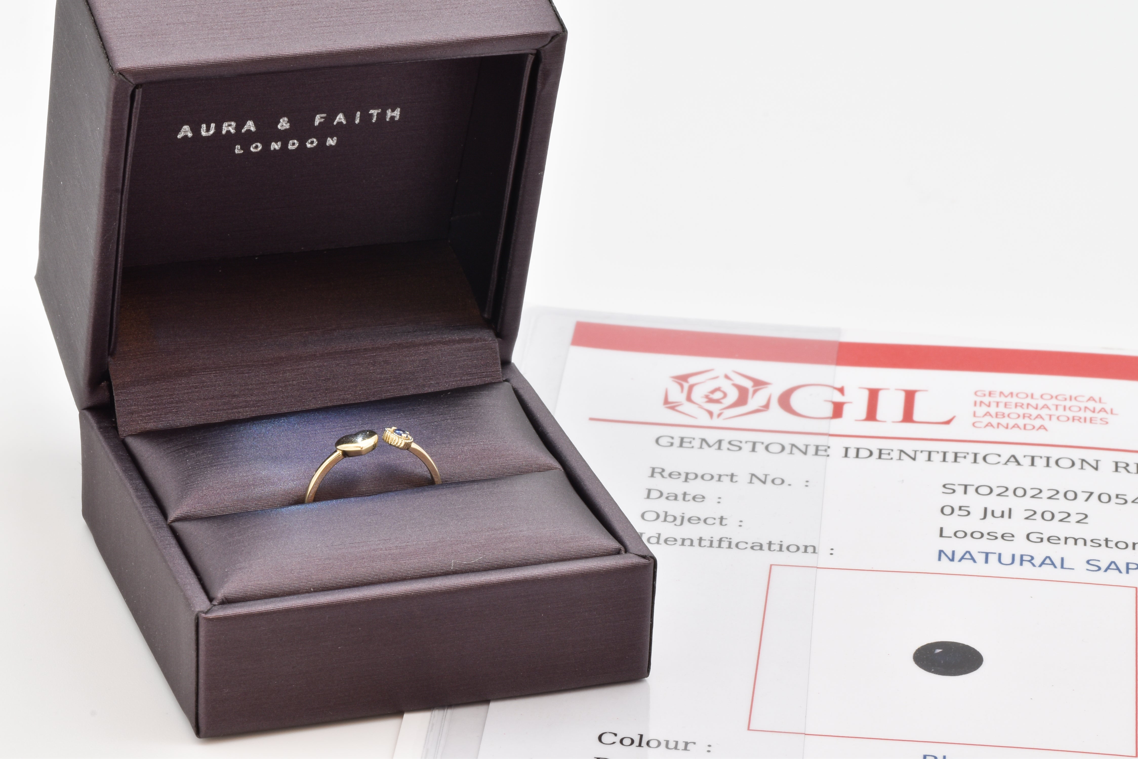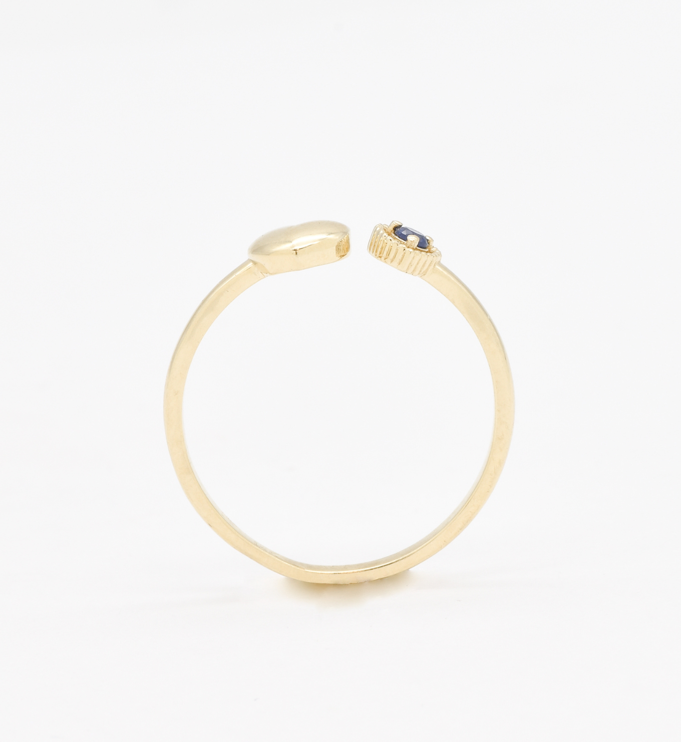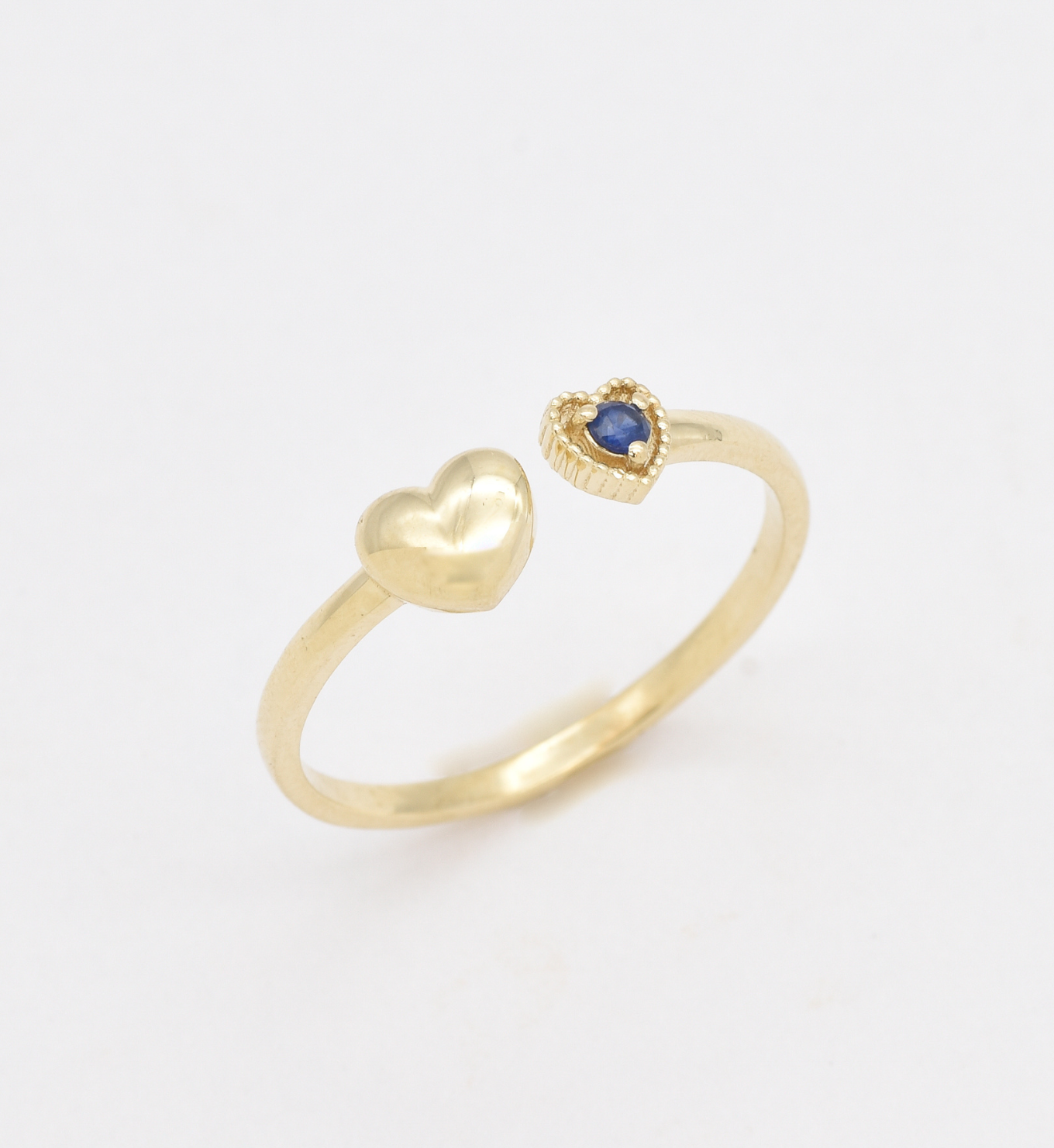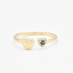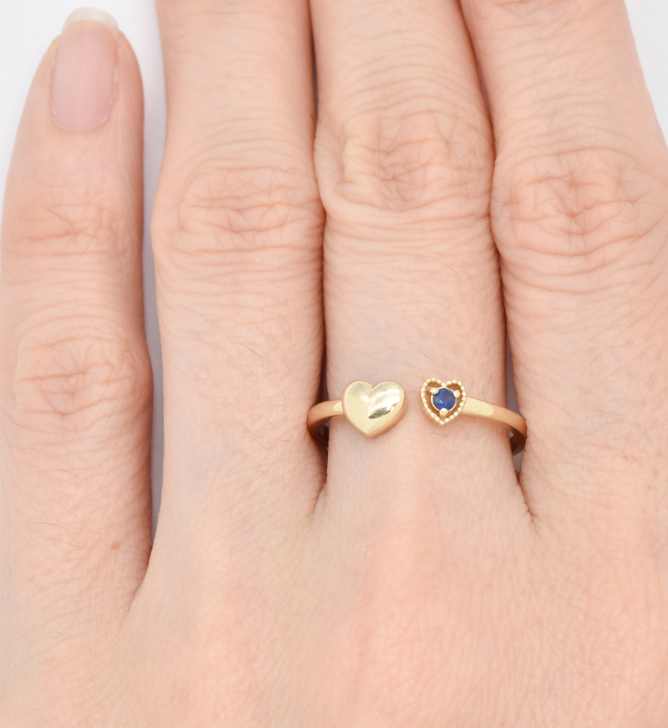 Certified Real Sapphire Gold Ring - Solid 14k Real Gold Sapphire Ring - Dainty Open Heart Real Gold Ring