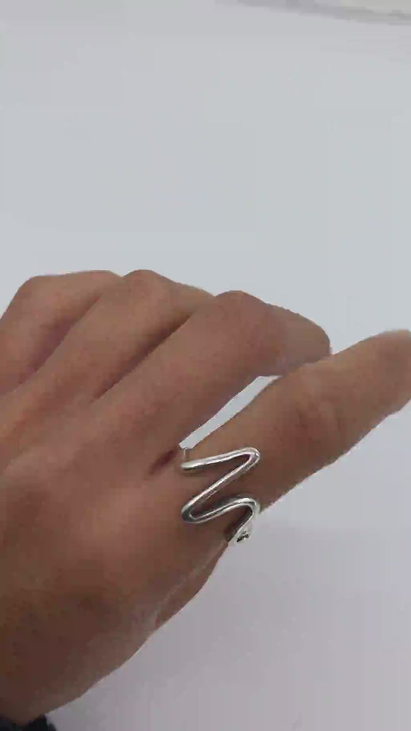 Silver Heartbeat Ring - Artistic Pulse Ring - Silver Wave Ring