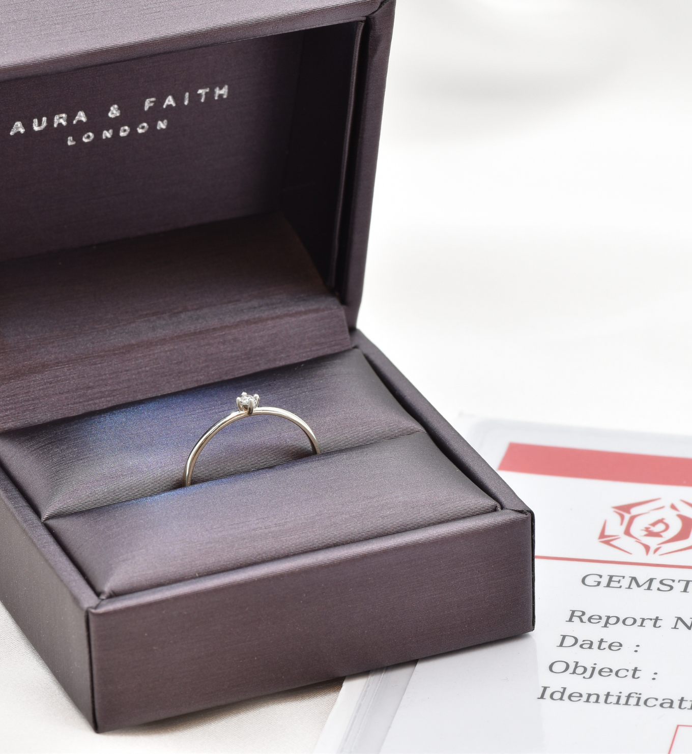 Certified Diamond Solitaire Ring set with Genuine Diamond, size 2 millimetres diameter, 0.03 Carats.