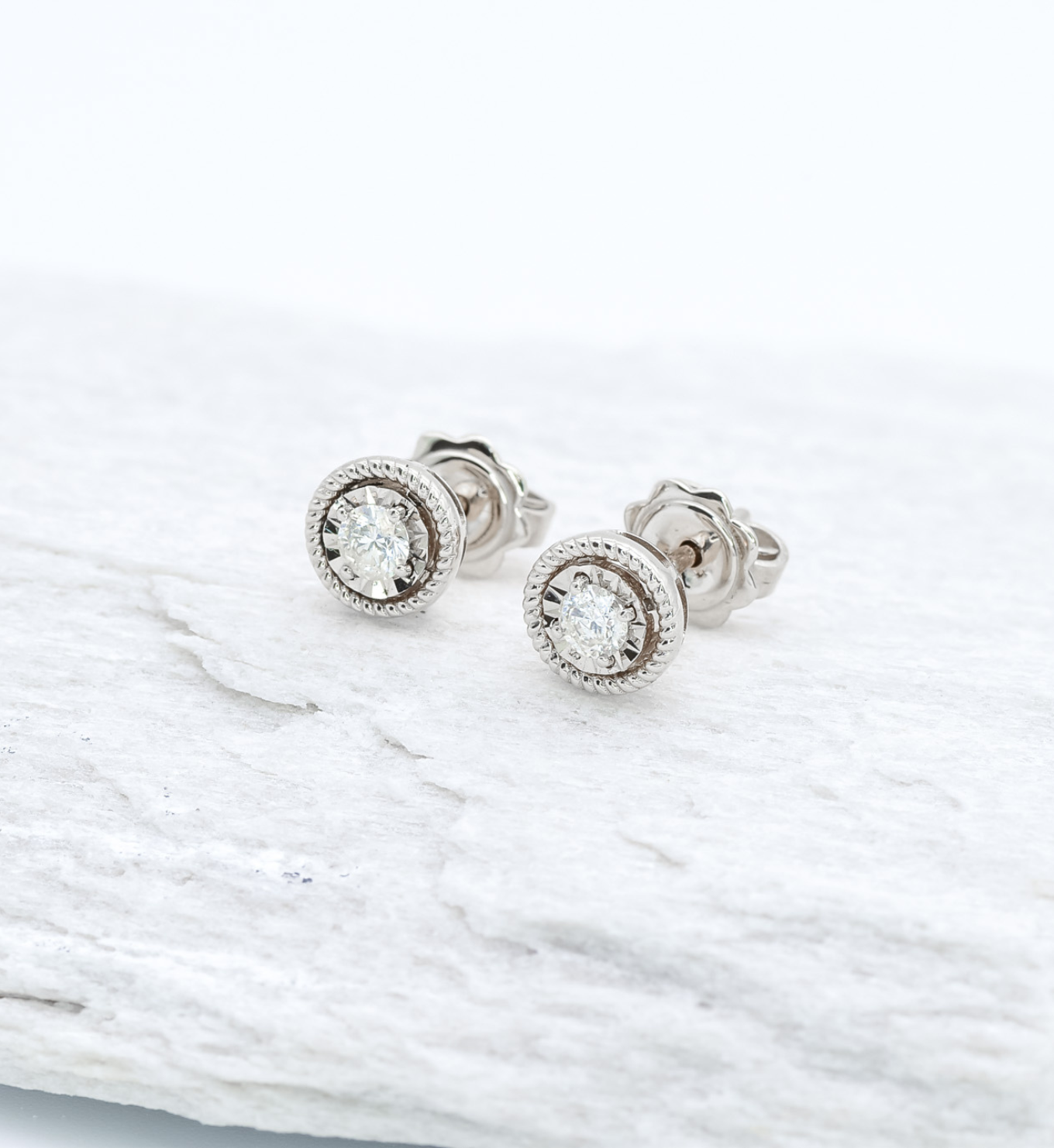 Genuine Diamond Studs - Real Solid Gold Earrings - White Gold Earrings Studs