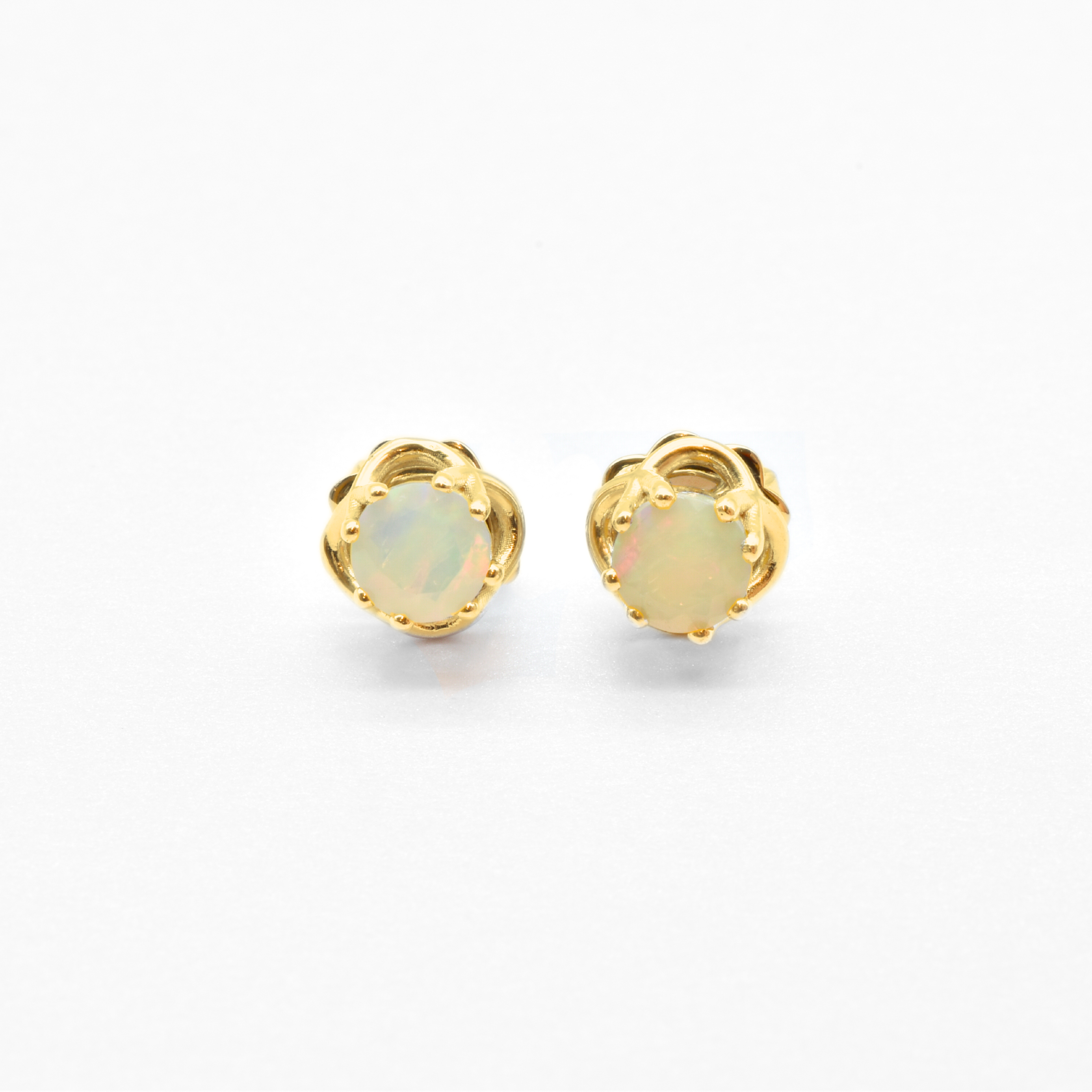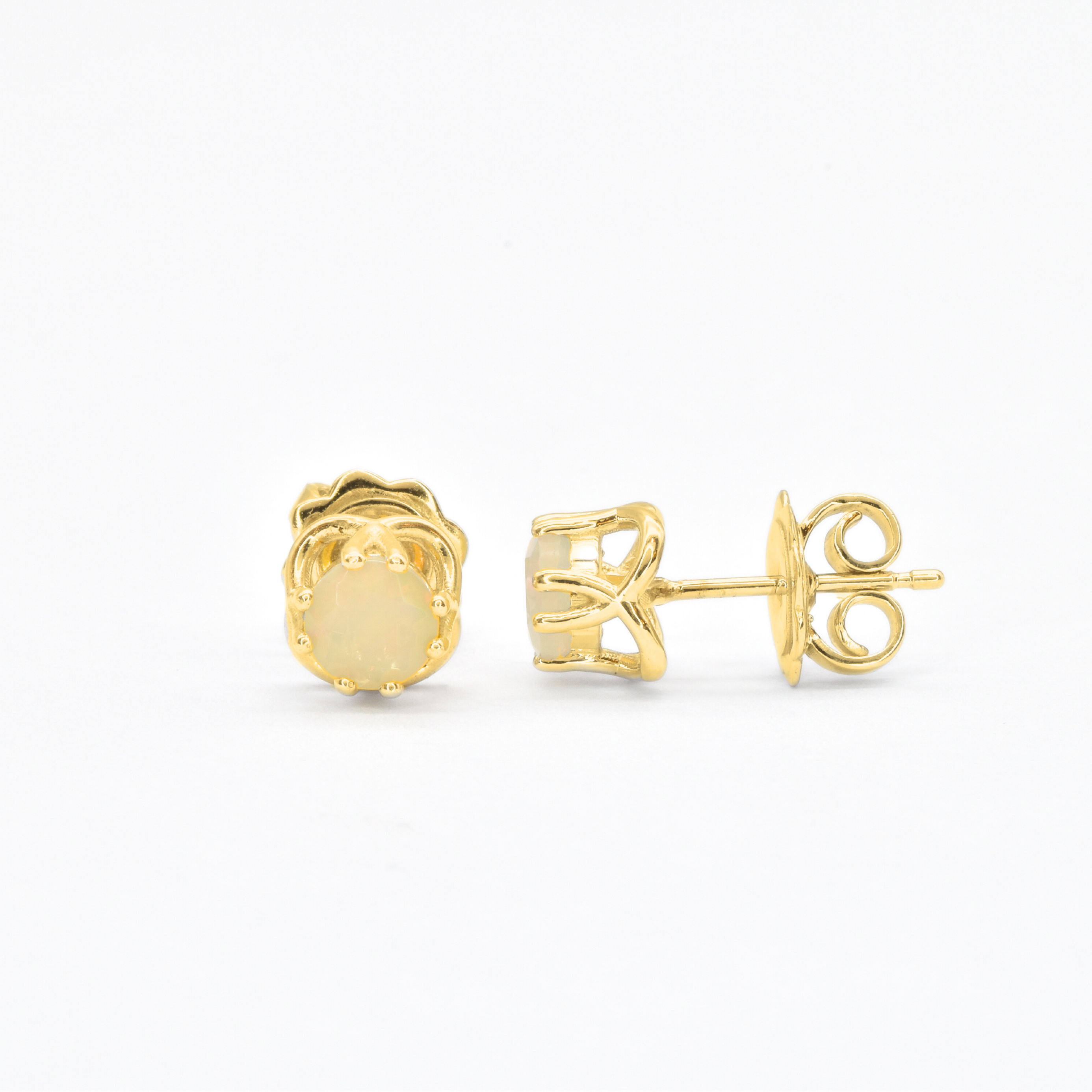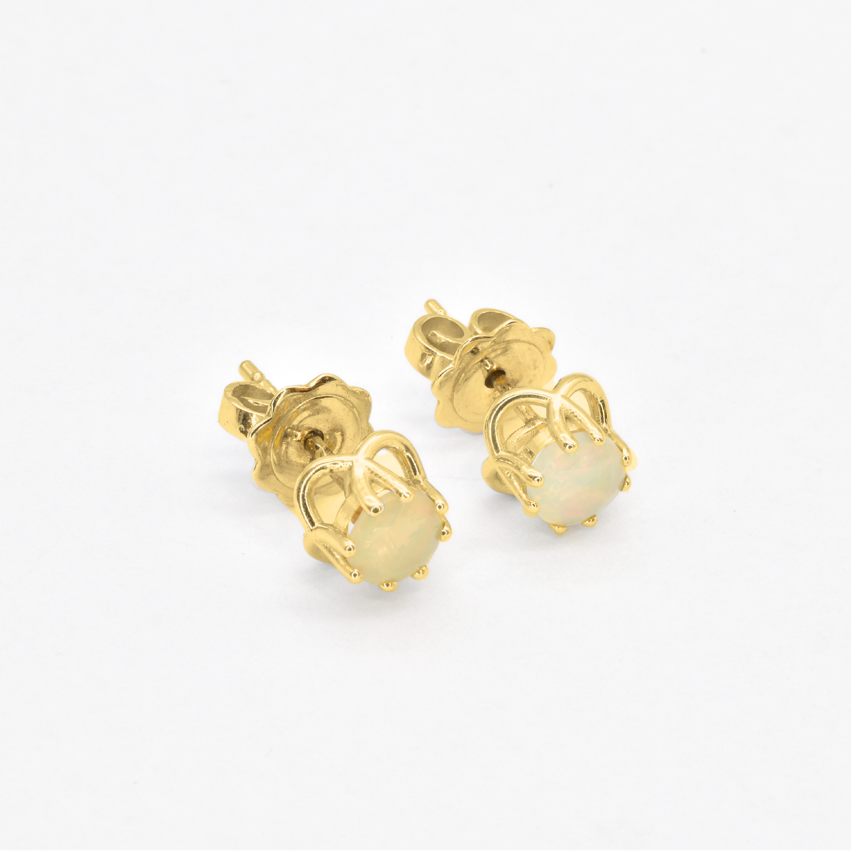 14k Solid Gold Opal Studs set Natural Ethiopian Opal, size 5 millimeters diameter, 0.8 Carats a pair.