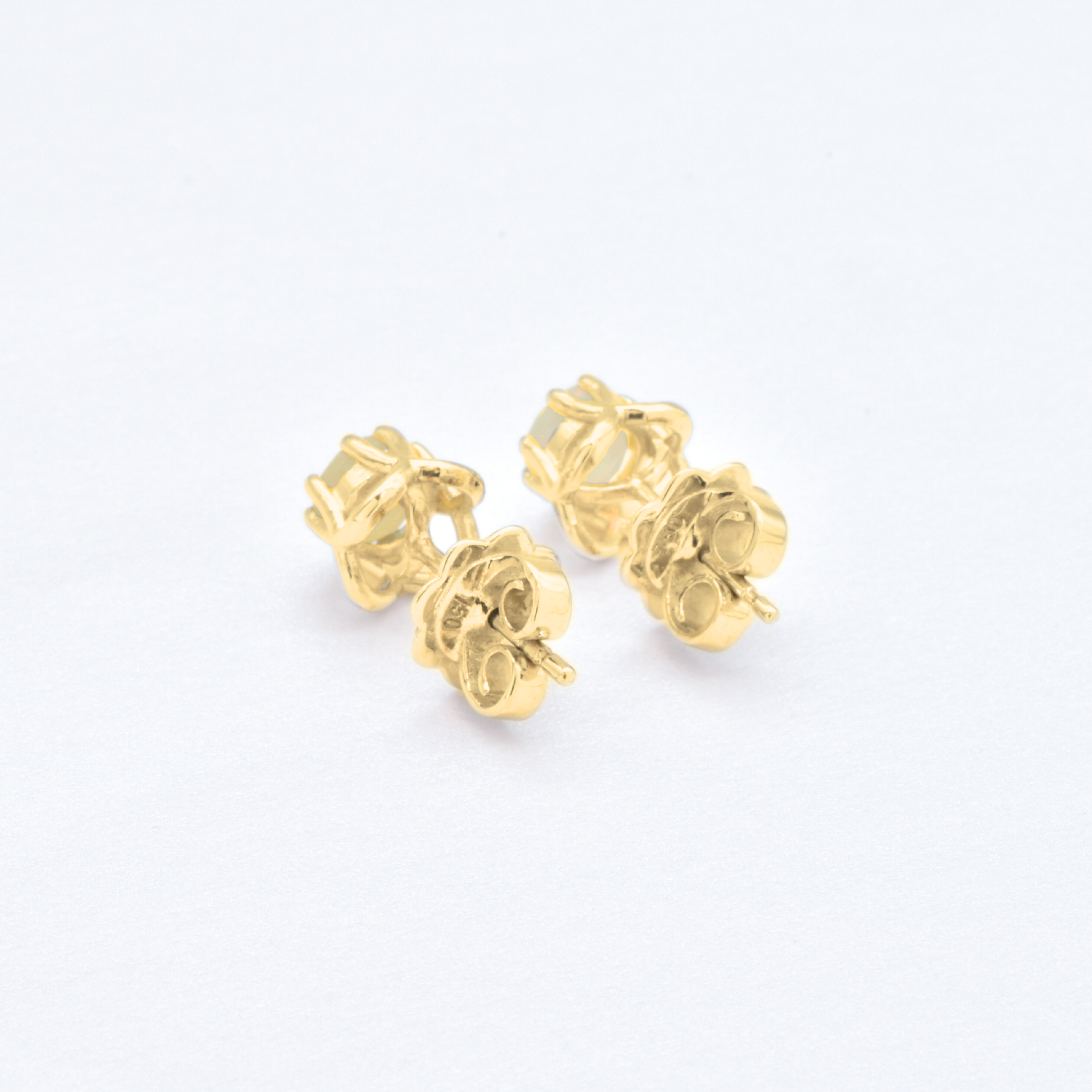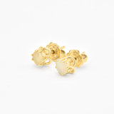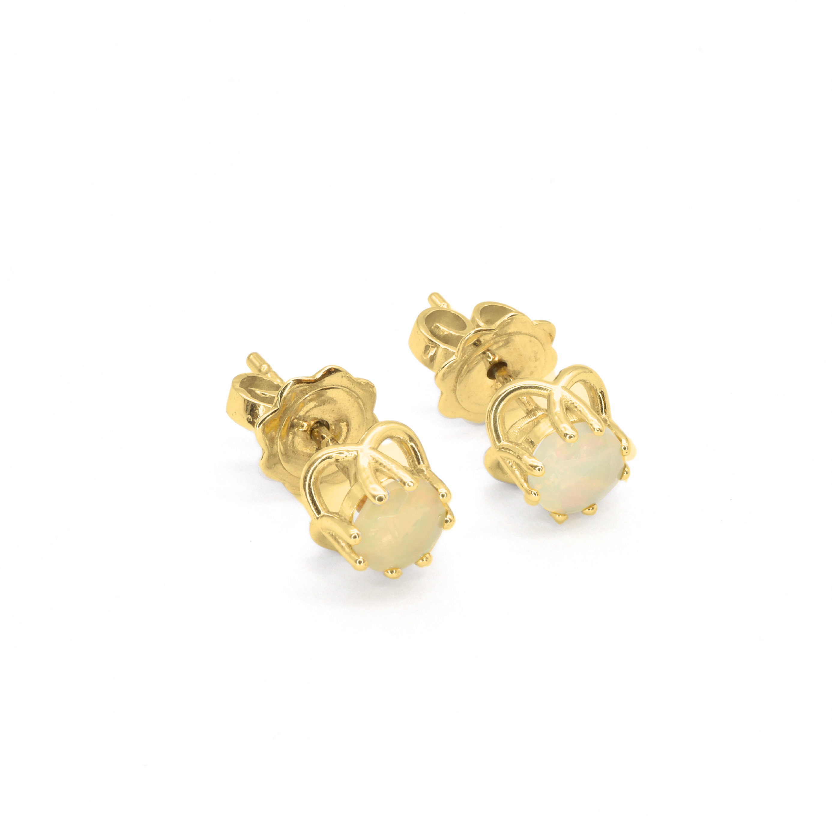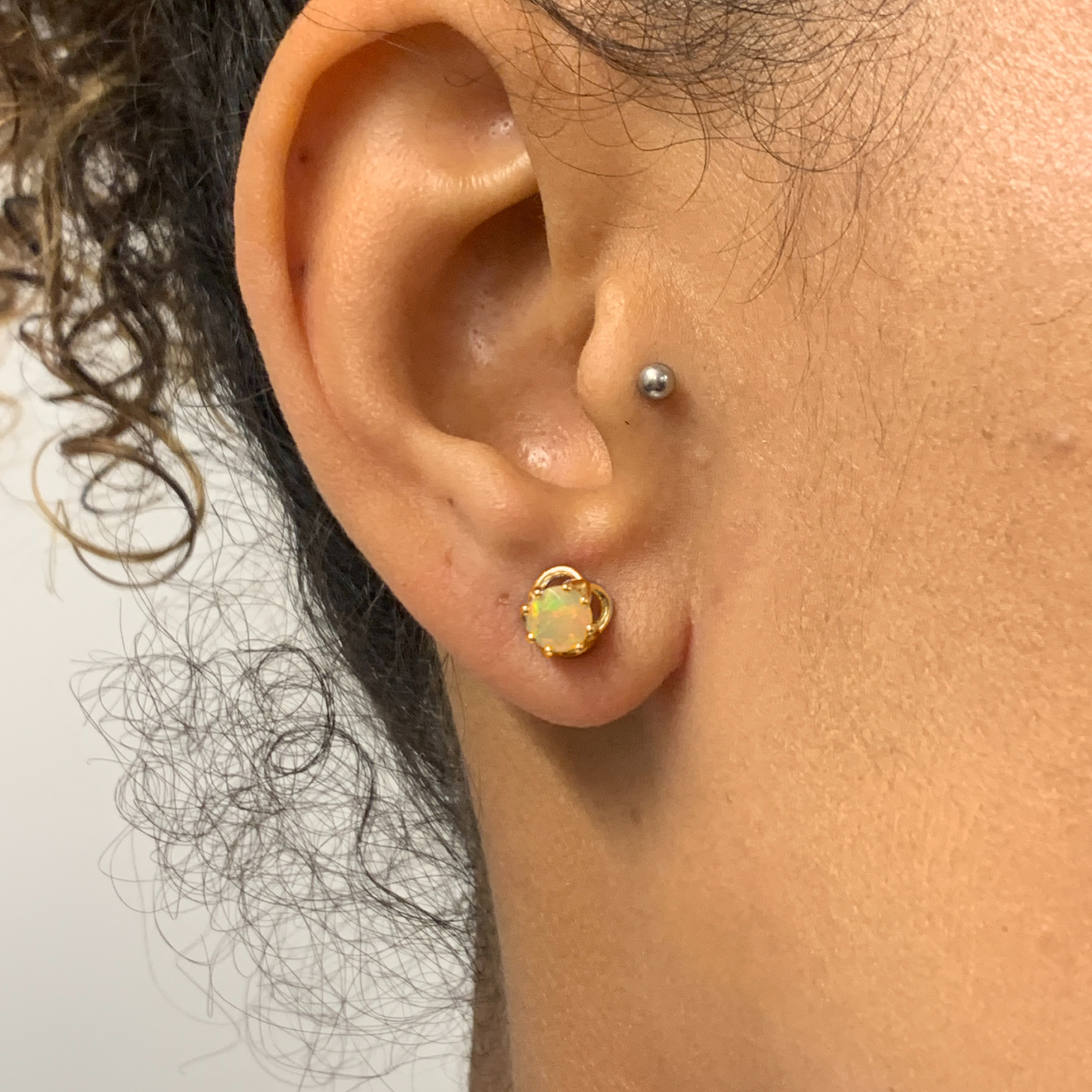 14k Solid Gold Opal Studs set Natural Ethiopian Opal, size 5 millimeters diameter, 0.8 Carats a pair.