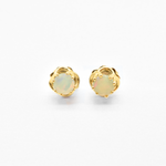 14k Gold Opal Studs - Certified Fire Opal Earrings - Solid Yellow Gold Opal Earrings