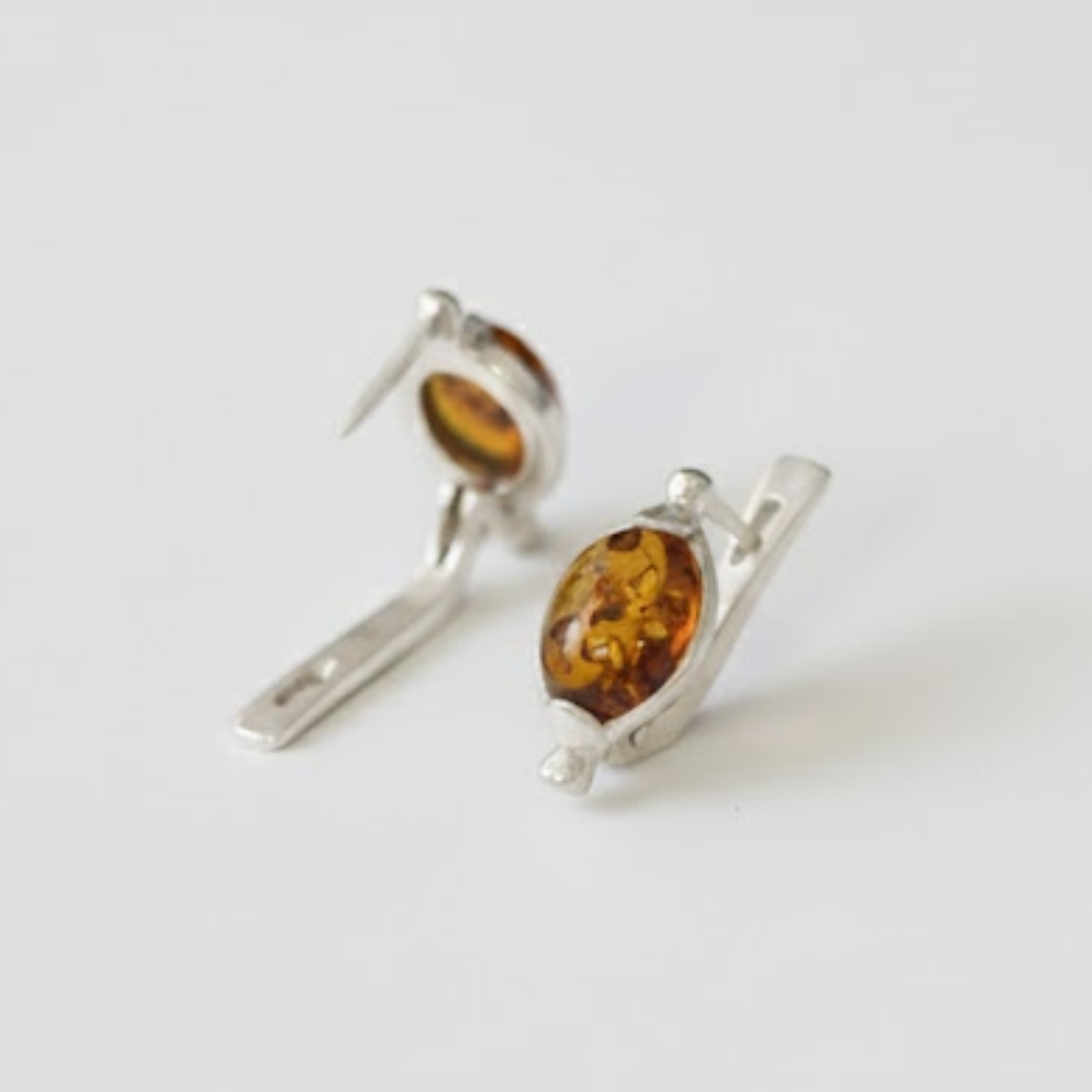 Oval Amber Earrings - Natural Amber Earrings, Yellow Amber Earrings