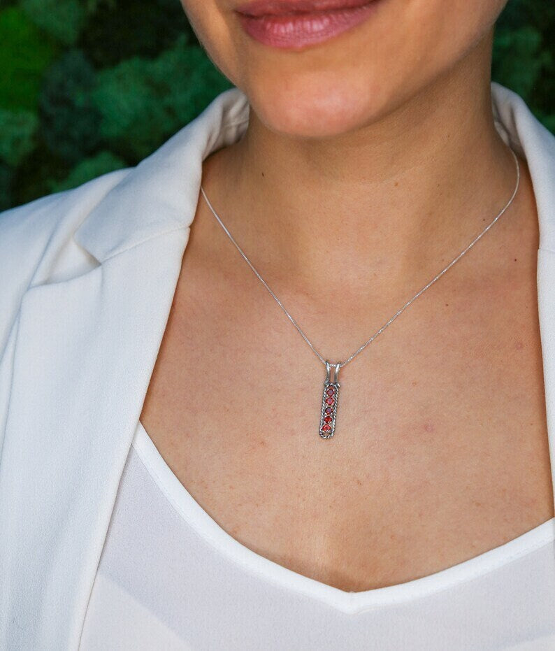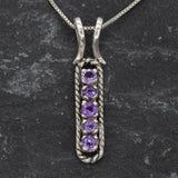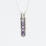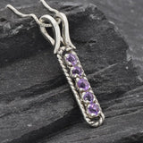 Vertical Amethyst Pendant set with Natural Amethysts in a flawless diamond cut and stunning purple color, 3mm, (1 Ct combined) from Brazil.