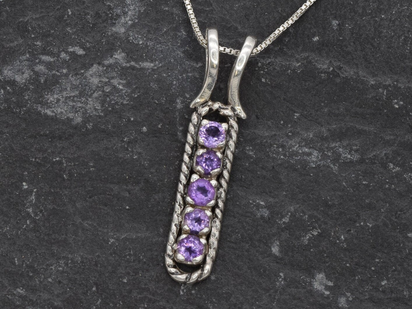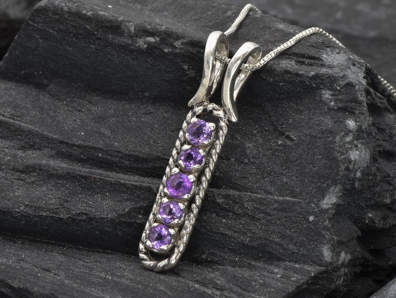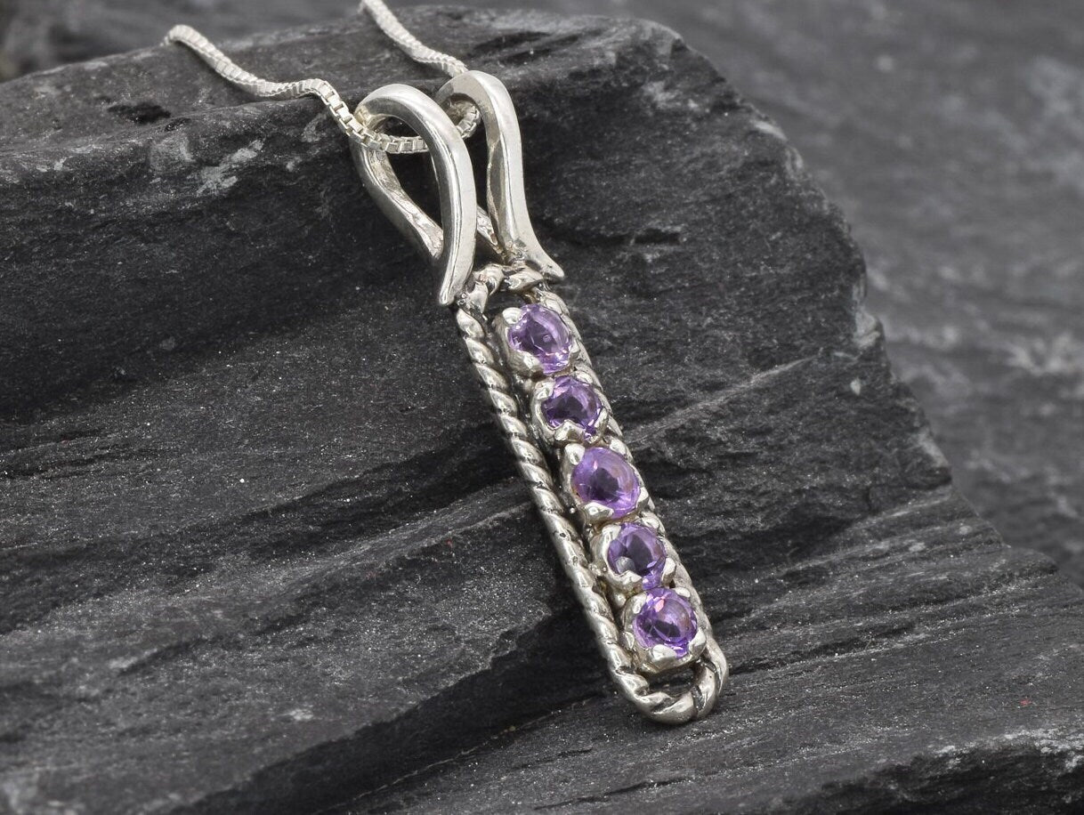 Amethyst Pendant, Vertical Bar Pendant, Natural Amethyst, February Birthstone, Vintage Necklace, Layering Necklace, Purple Pendant, Silver