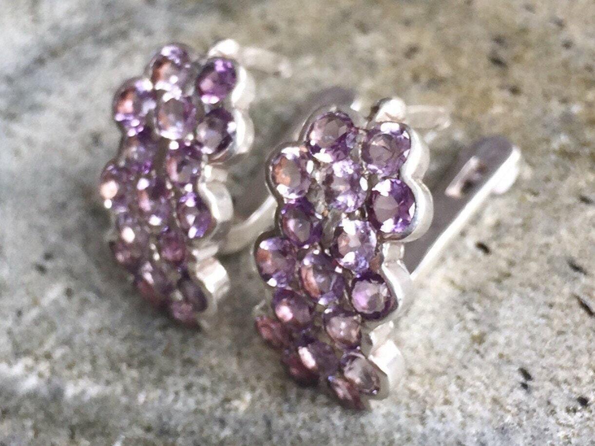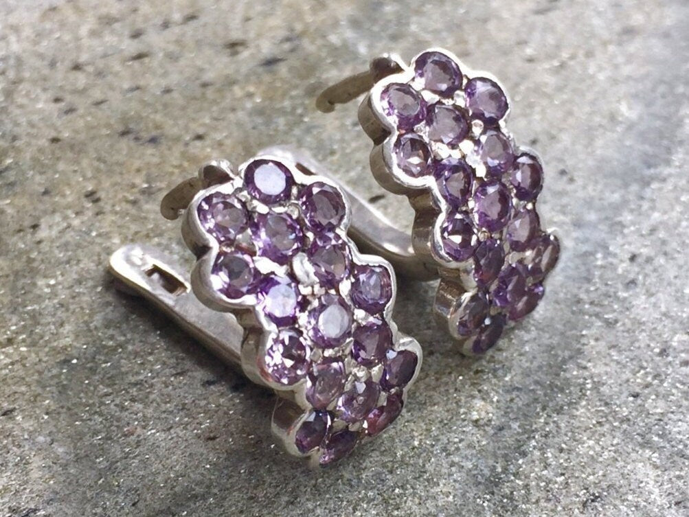 Amethyst Earrings, Natural Amethyst, February Birthstone, Vintage Earrings, February Earrings, 6 Carats, Victorian Earrings, Solid Silver