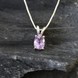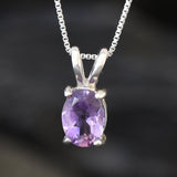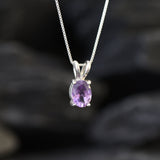 Purple Amethyst Necklace - Natural Amethyst Necklace - Purple Oval Pendant