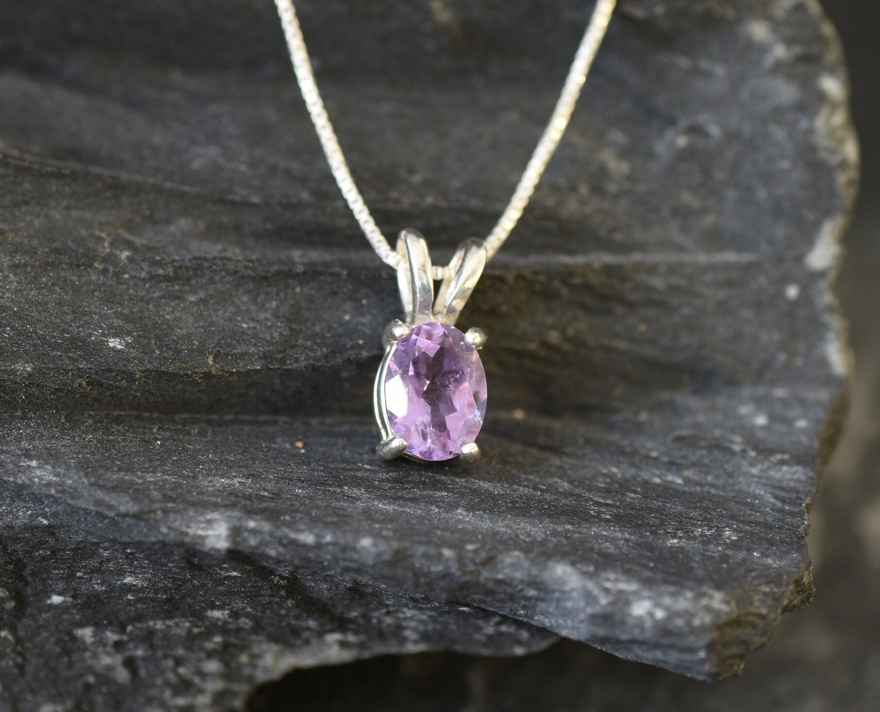 Amethyst Pendant, Natural Amethyst, February Birthstone, Purple Pendant, Vintage Pendant, Dainty Pendant, Solid Silver Pendant, Amethyst