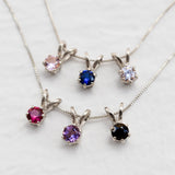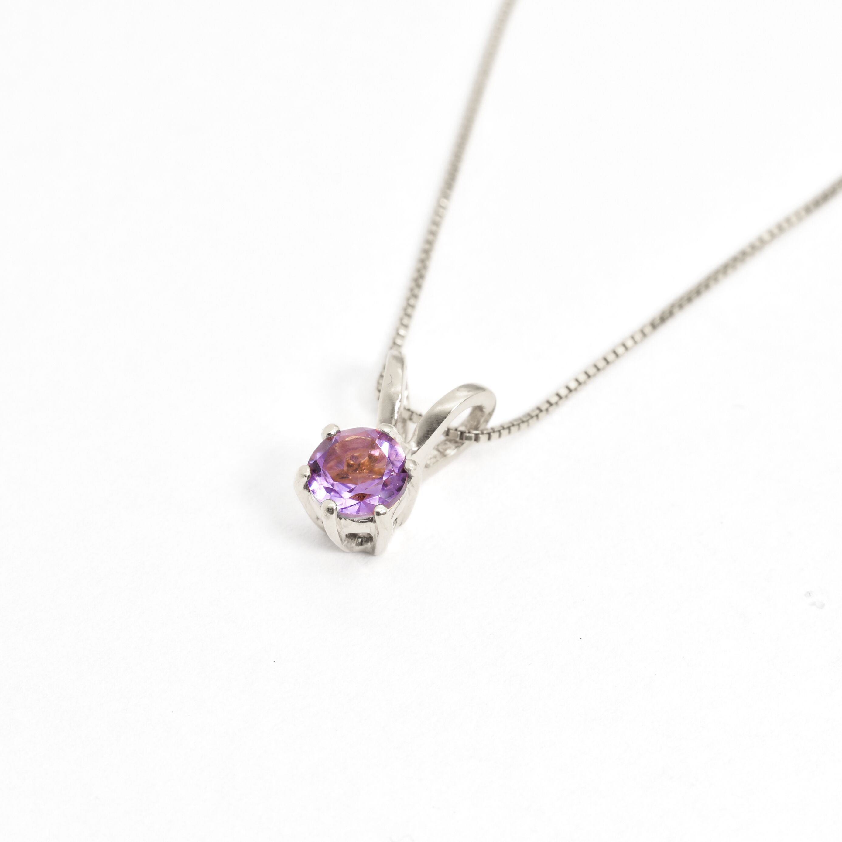 Purple Amethyst Pendant set with a Natural Amethyst in a perfect diamond cut, flawless clarity & natural purple color, at 5mm (0.6 Ct) from Brazil.