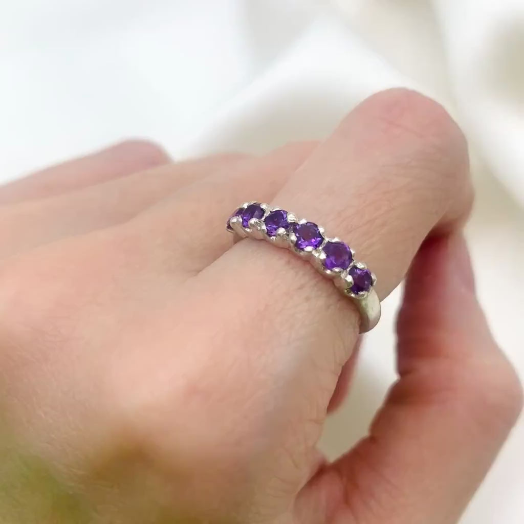 Genuine Amethyst Ring - Purple Half Eternity Ring - Vintage Stackable Ring