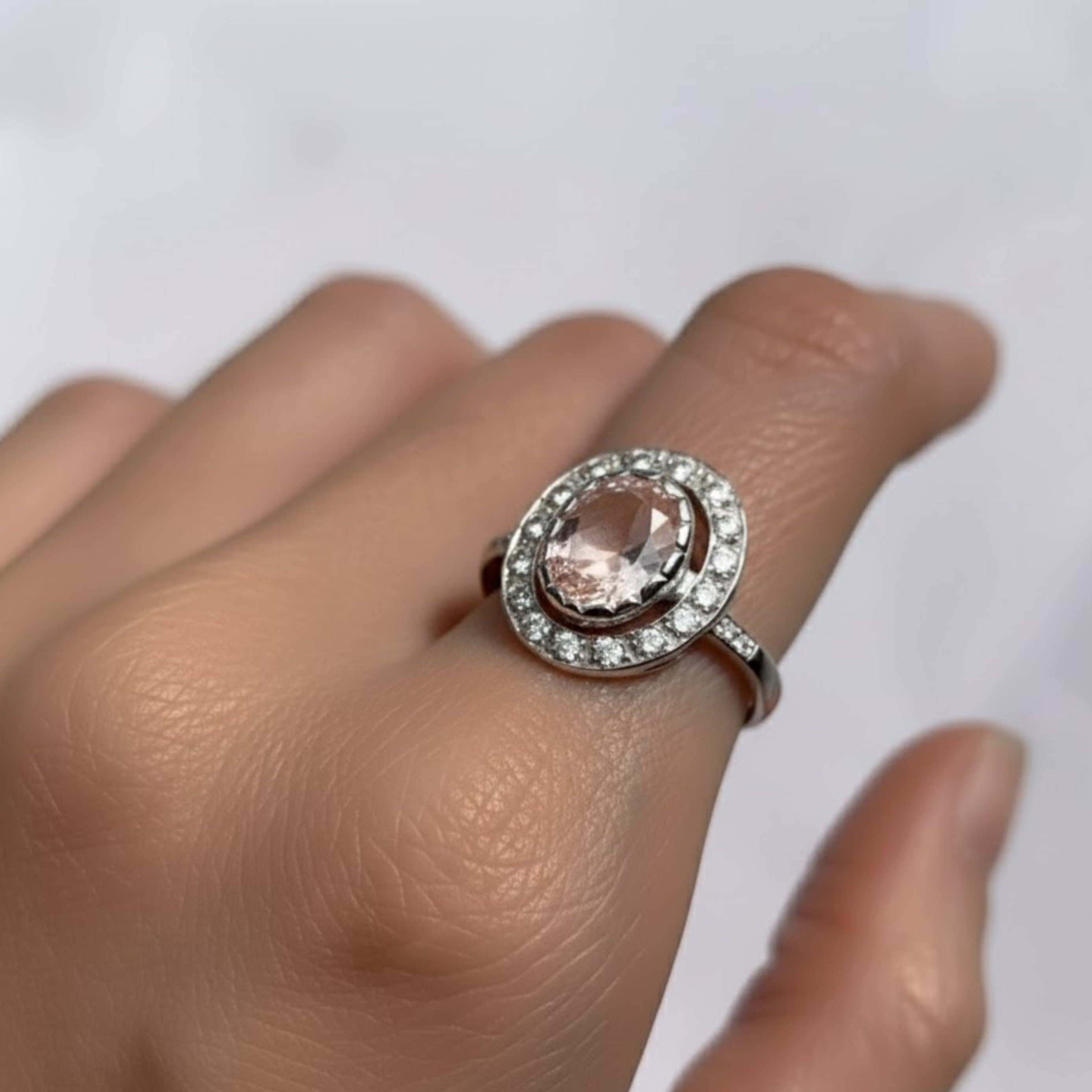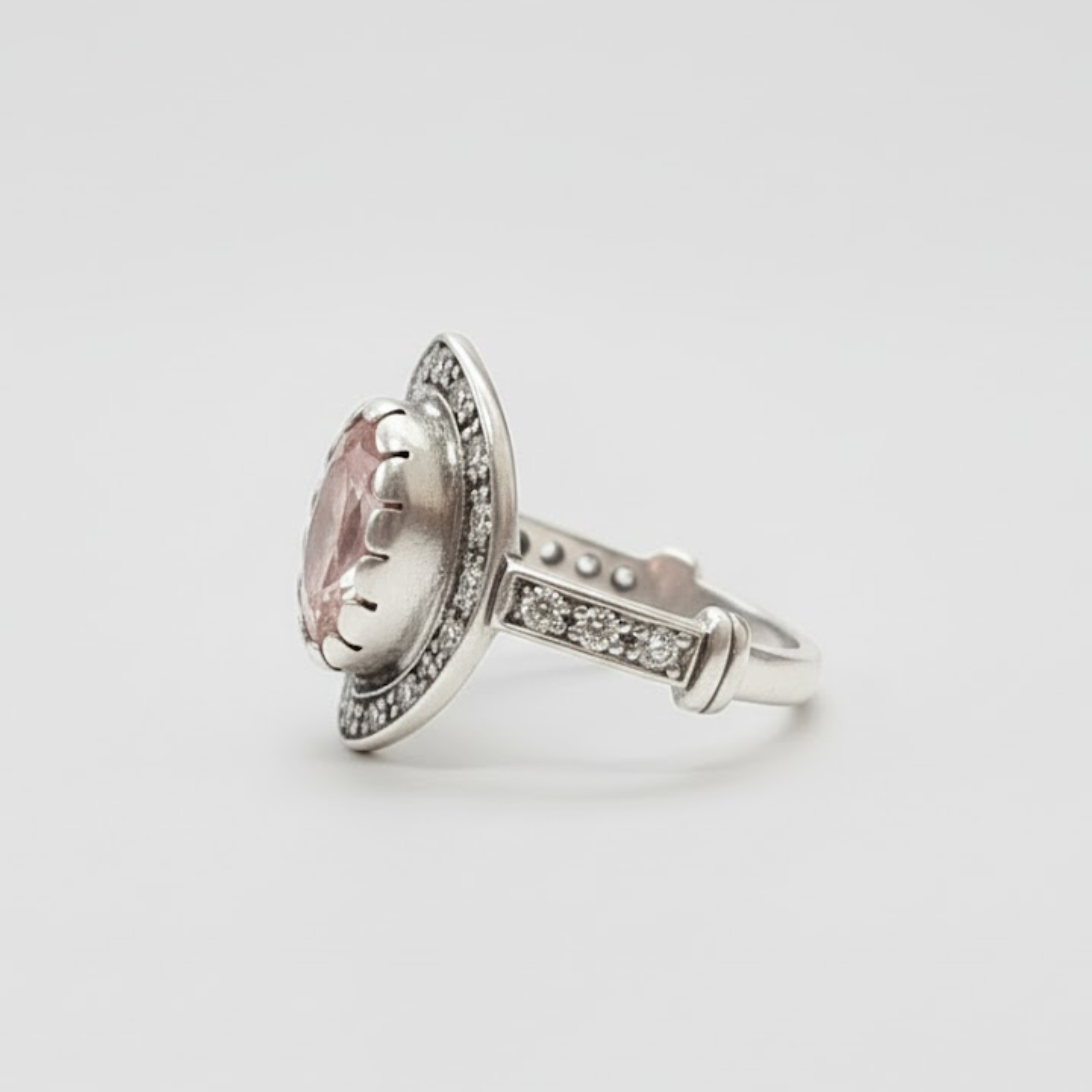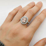 Pink Victorian Ring - Morganite Silver Ring - Morganite Halo Ring