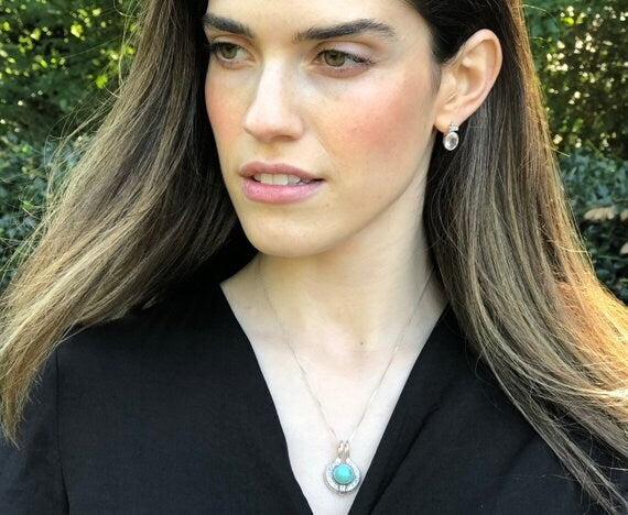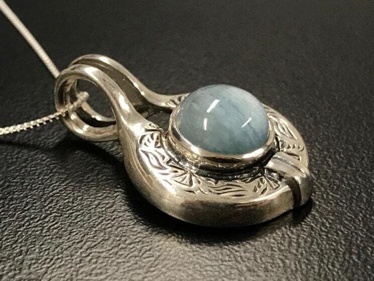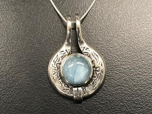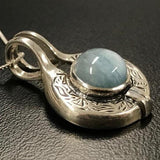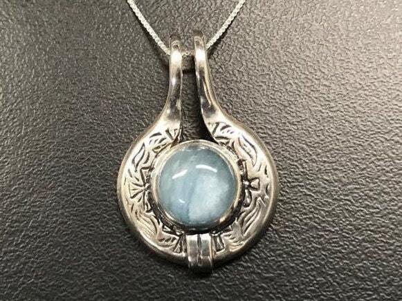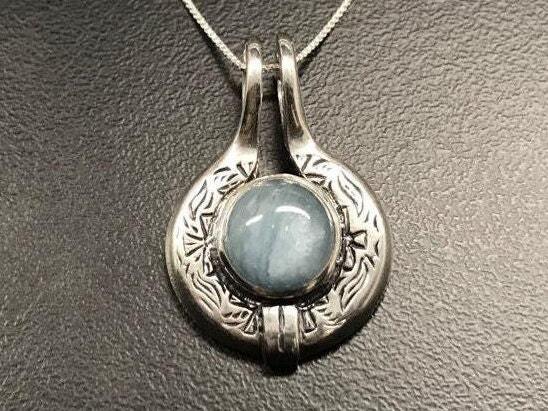 Aquamarine Pendant, Natural Aquamarine, Tribal Pendant, March Birthstone, Blue Vintage Pendant, March Pendant, Silver Pendant, Aquamarine