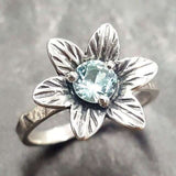 Aquamarine Flower Ring - Vintage Aquamarine Ring - Blue Flower Ring