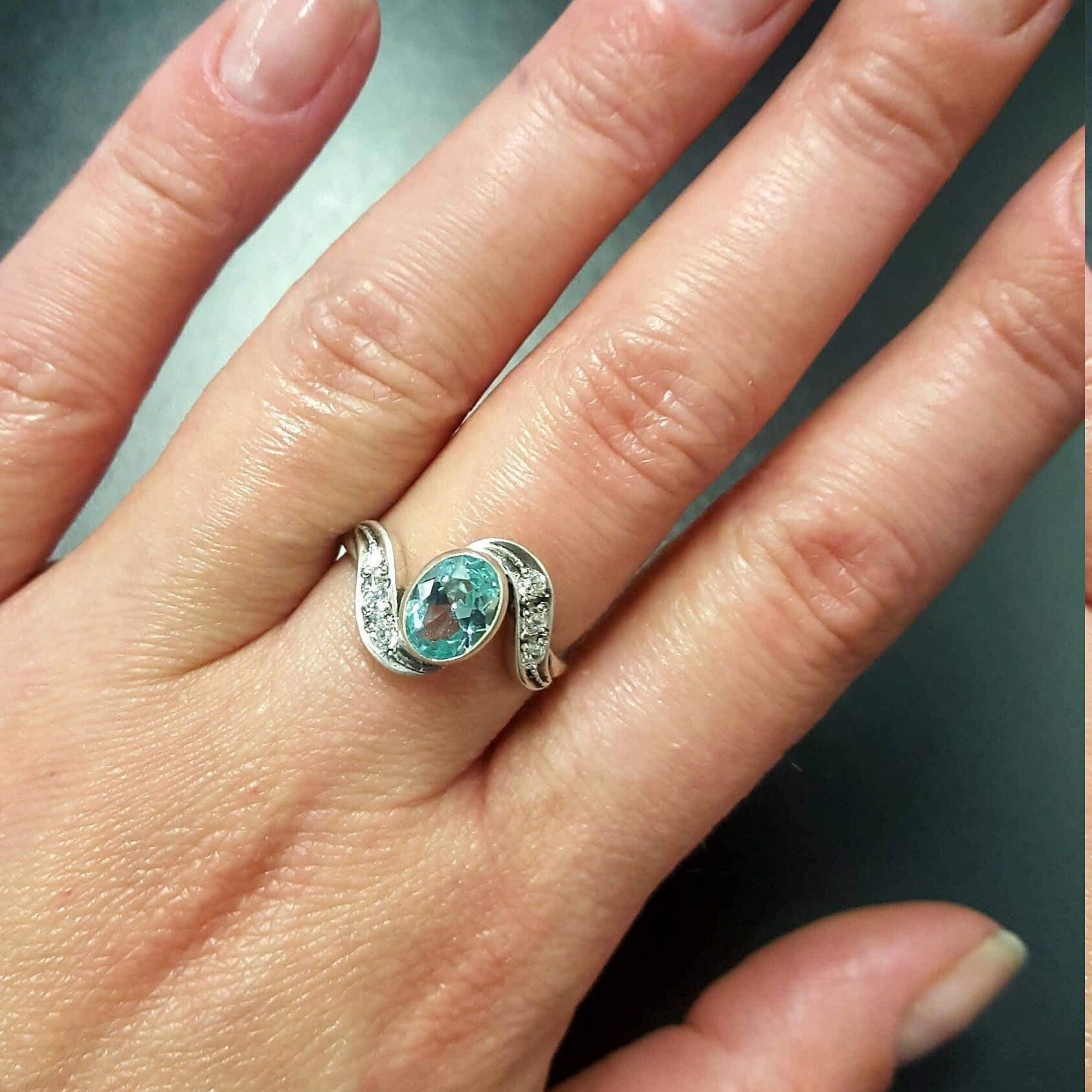 Blue Aquamarine Ring, Created Aquamarine, Blue Diamond Ring, Vintage Rings, Aqua Ring, Blue Vintage Ring, Blue Aqua Ring, Solid Silver Ring(1)