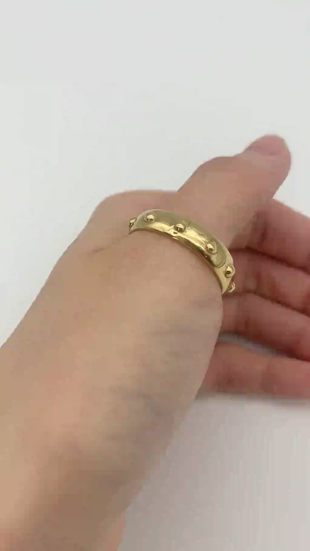 Beaded Gold Band - Wide Dotted Ring, Unique Wedding Band