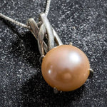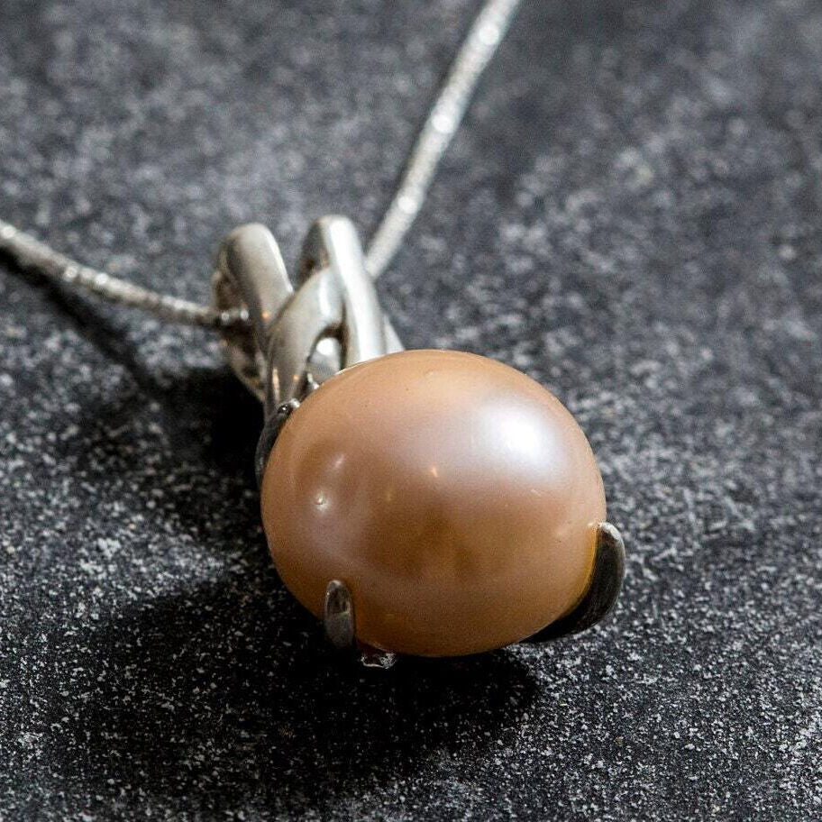 Beige Pearl Pendant set with a Natural Pearl in a natural beige color, at 11mm (AAA grade)  from Japan.