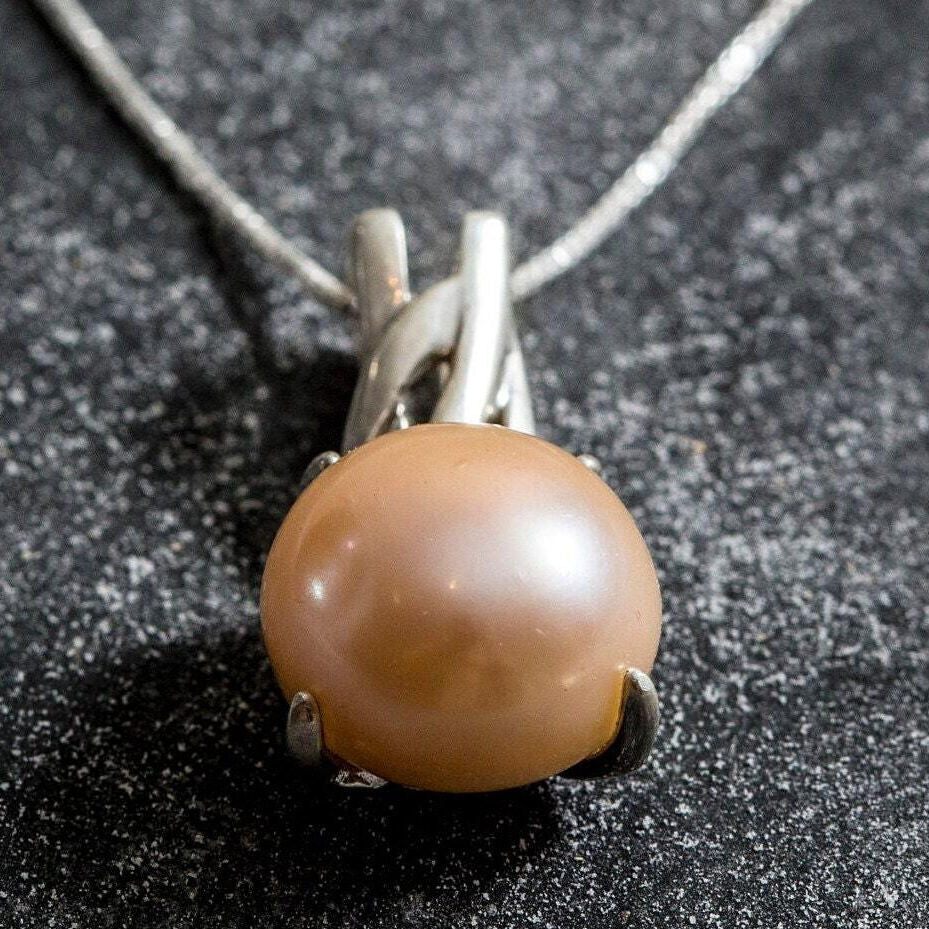 Beige Pearl Pendant,  Natural Pearl, Beige Pearl, June Birthstone, Real Pearl Pendant, Vintage Pendant, Beige Pendant, Silver Pendant, Pearl