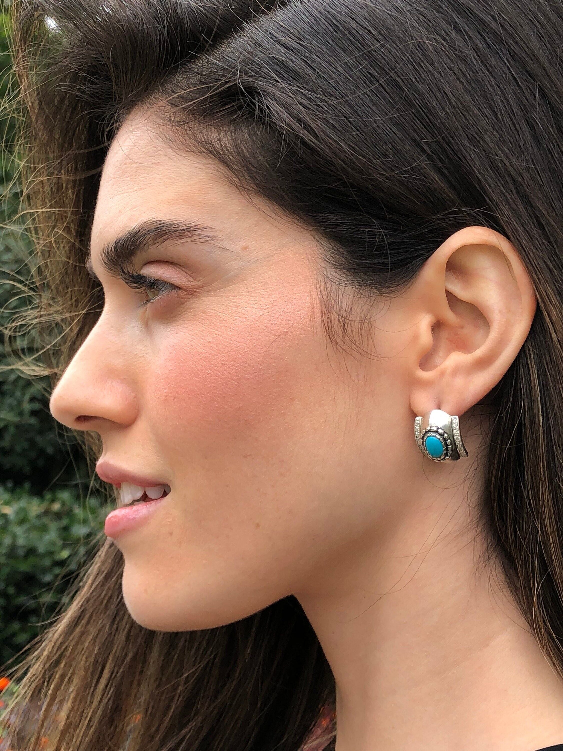 Statement Sapphire Earrings - Chunky Dome Earrings - Natural Sapphire Earrings