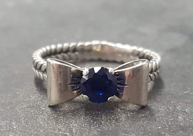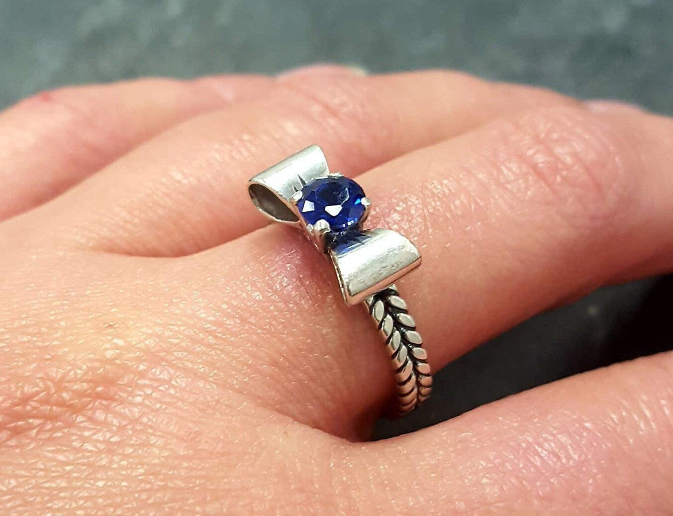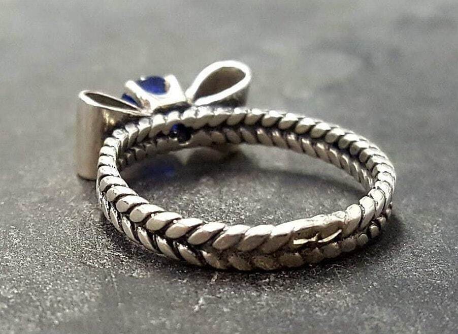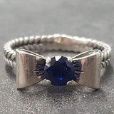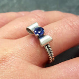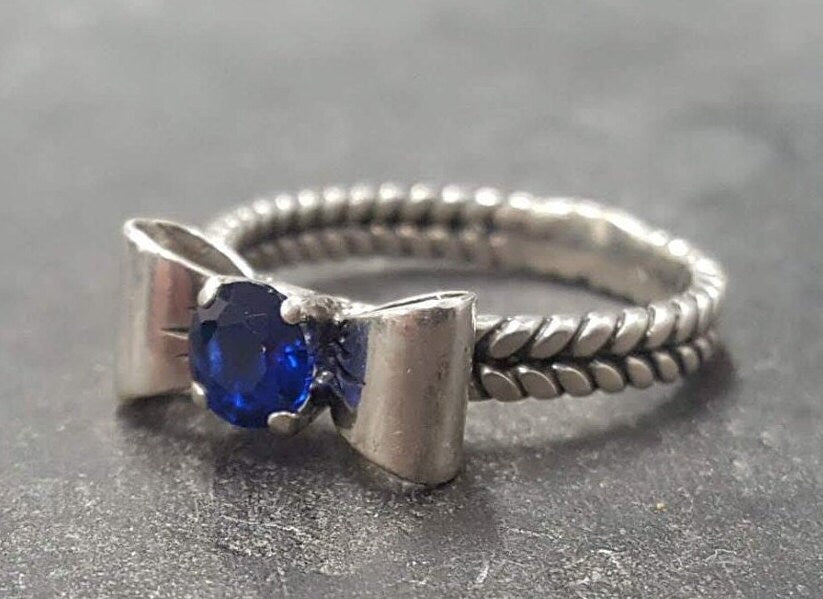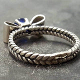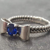Sapphire Silver Ring - Blue Ribbon Ring - Bow Silver Ring