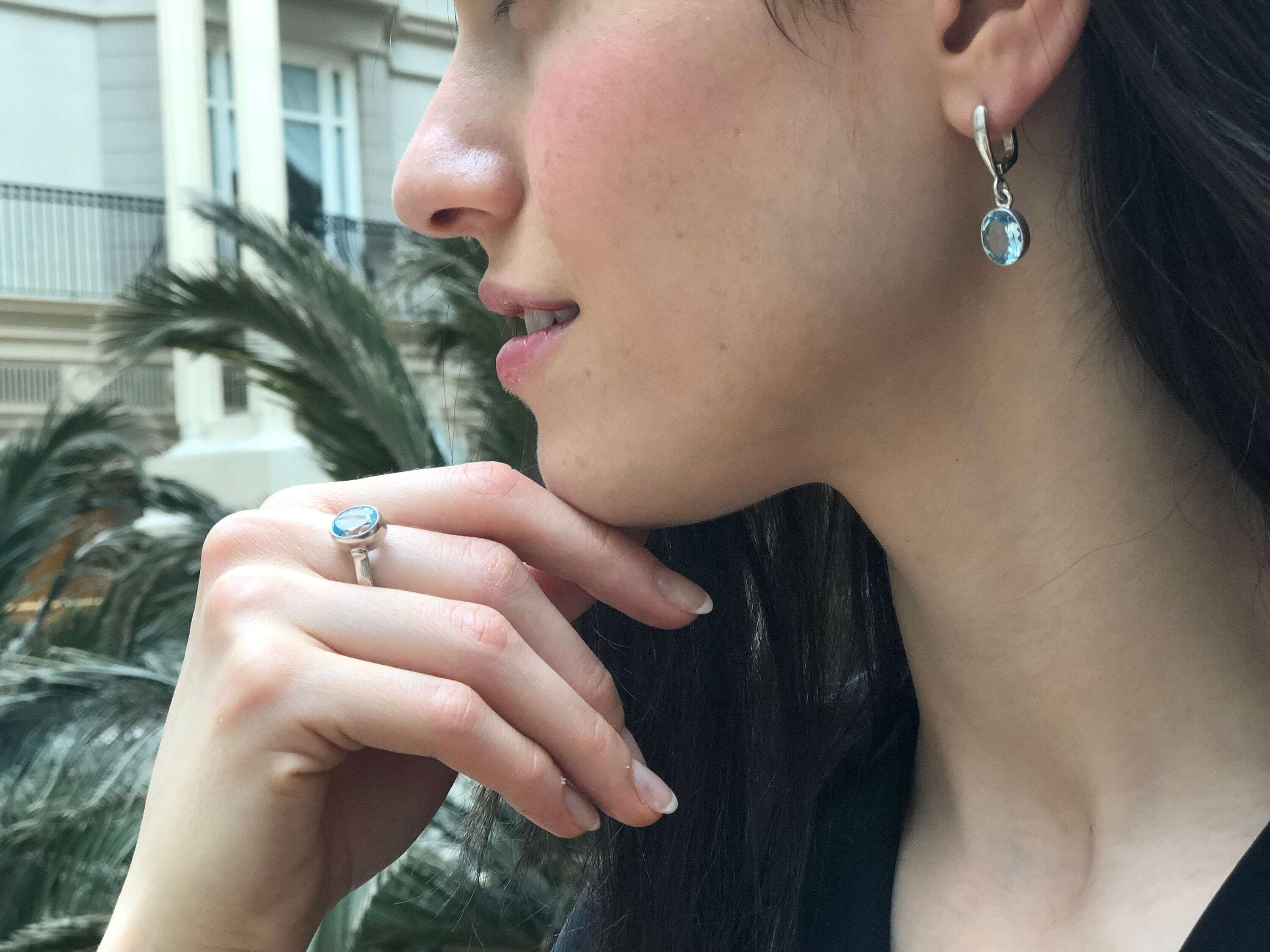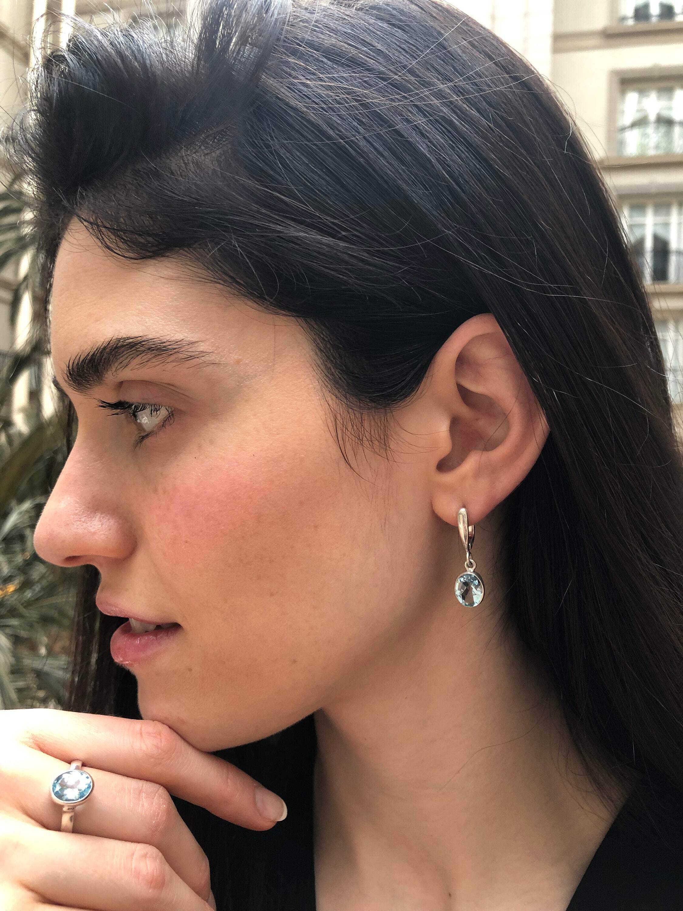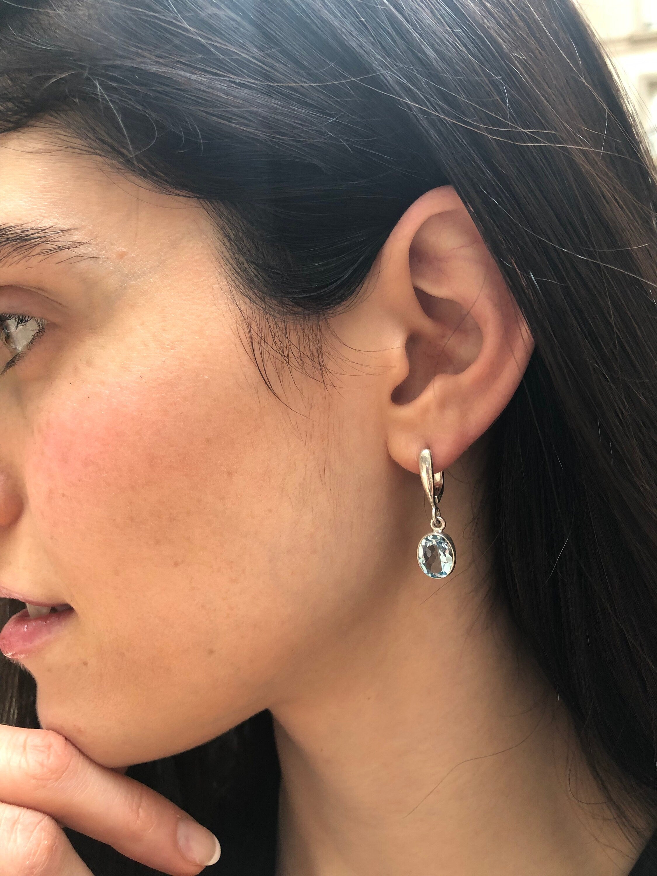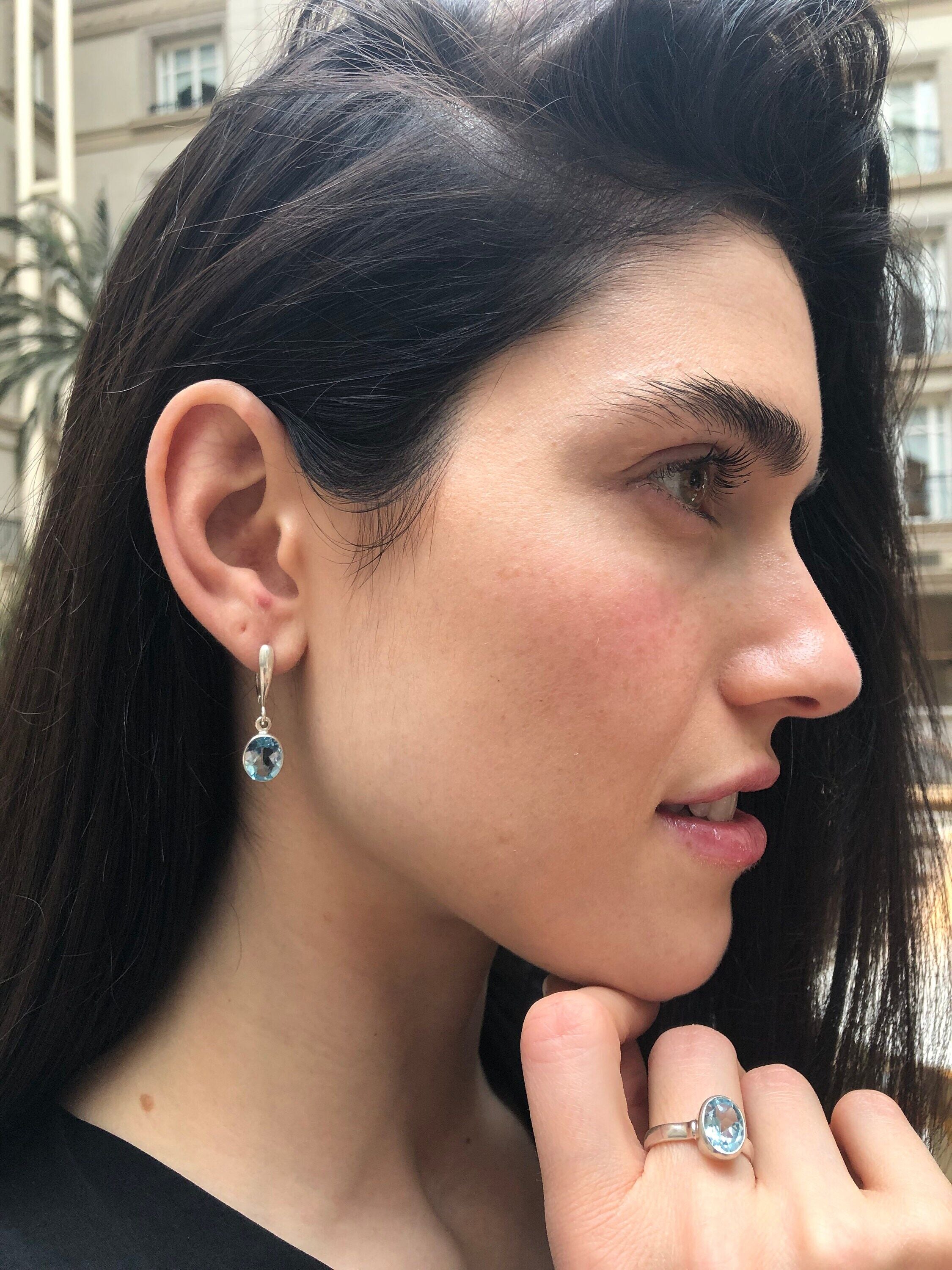 Blue Topaz Earrings, Natural Blue Topaz, Dainty Earrings, December Birthstone, Dangle Earrings, December Earrings,Solid Silver Earrings,Blue