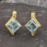 Blue Topaz Earrings, Natural Blue Topaz, December Earrings, Rhombus Earrings, Topaz Earrings, Vintage Earrings, Square Earrings, Blue Topaz(1)