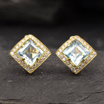 Vintage Blue Topaz Earrings - Blue Gemstone Square Studs - December Birthstone Earrings