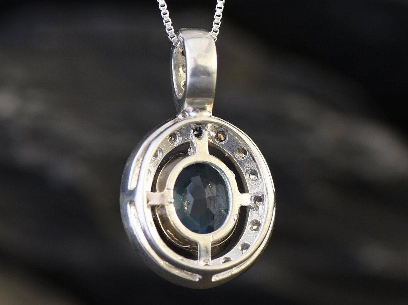 Blue Topaz Pendant, Natural Blue Topaz, December Birthstone, Antique Pendant, Blue Oval Pendant, Solid Silver, Topaz Cz, Dainty Pendant, 925