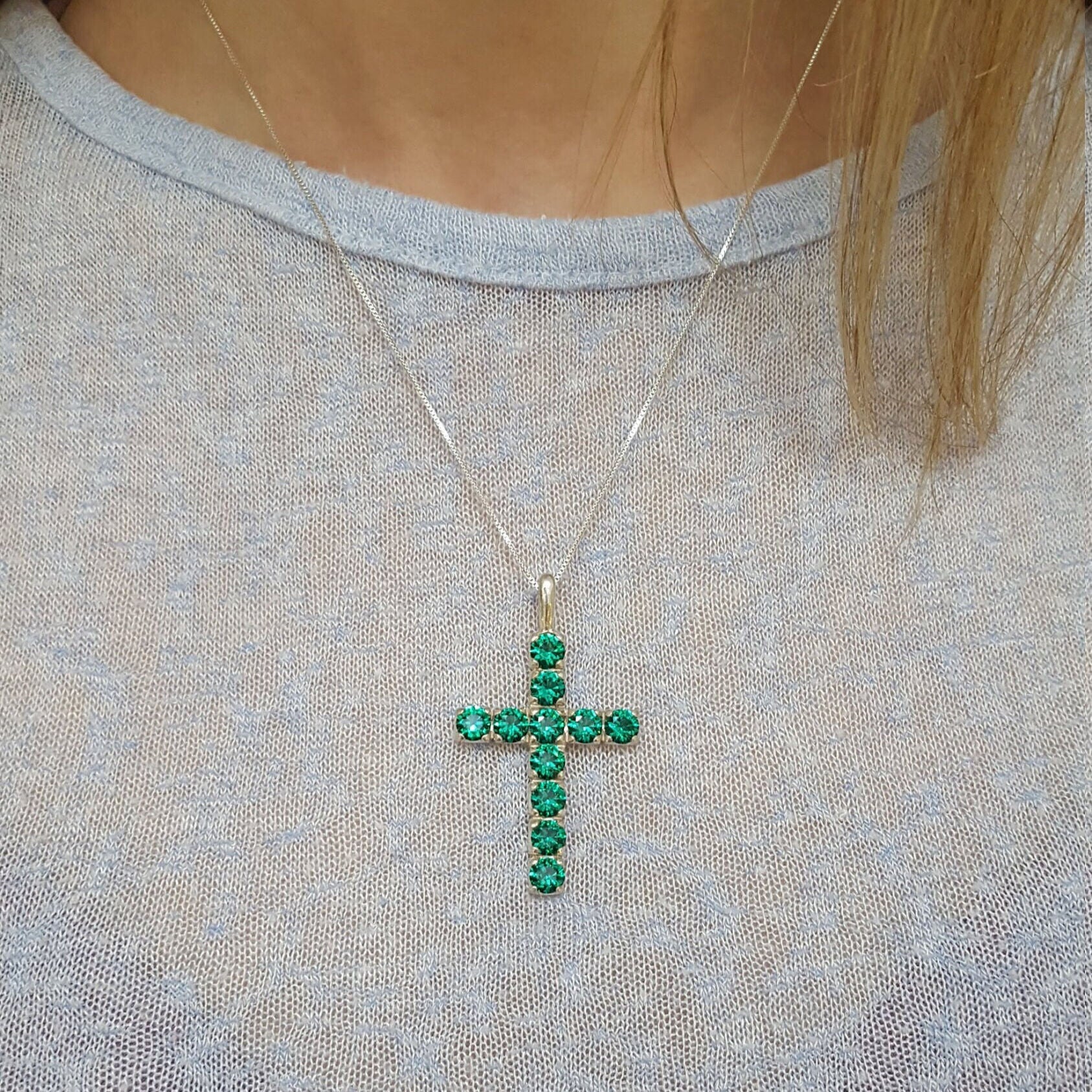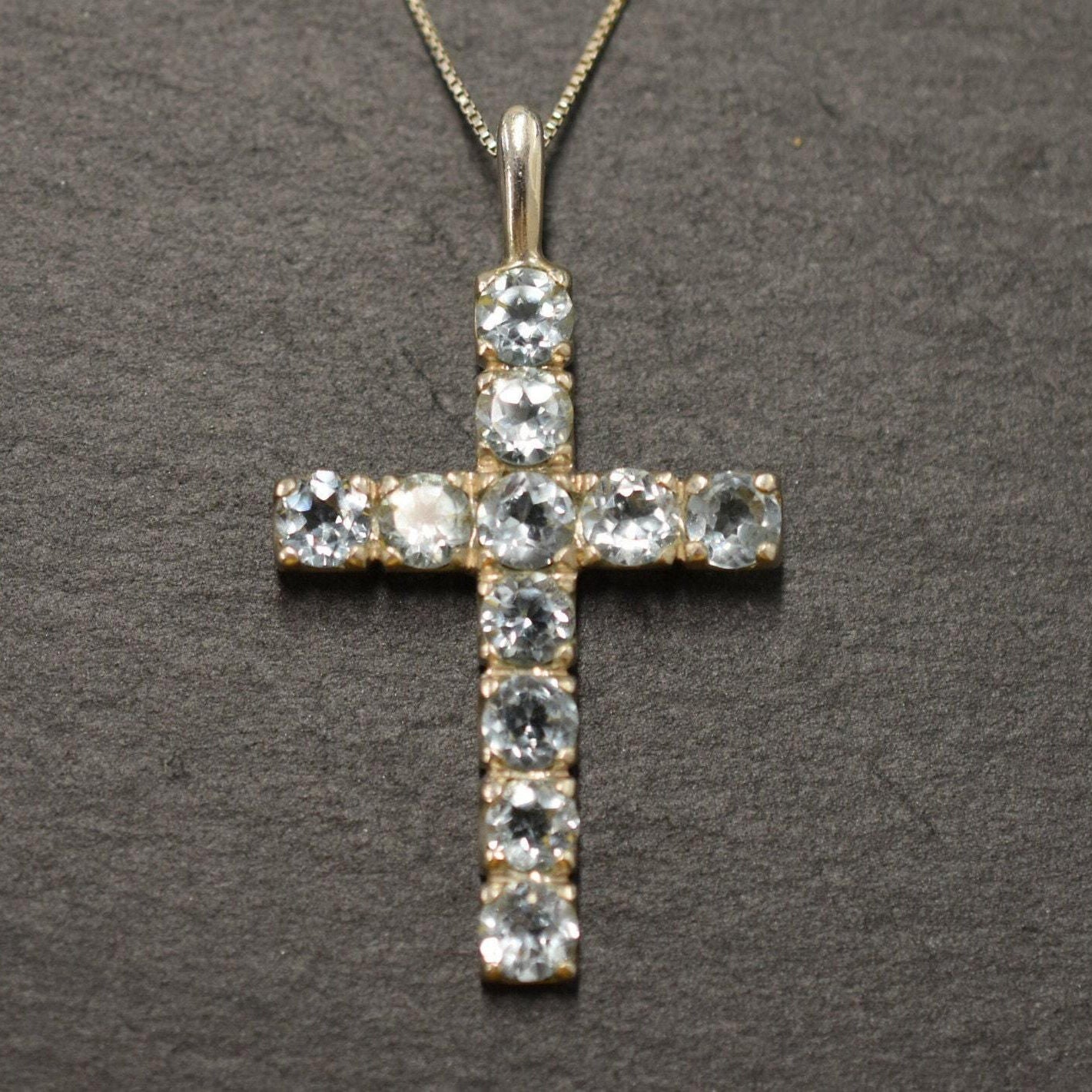 Topaz Cross Necklace - Natural Blue Topaz Necklace - Statement Cross Pendant