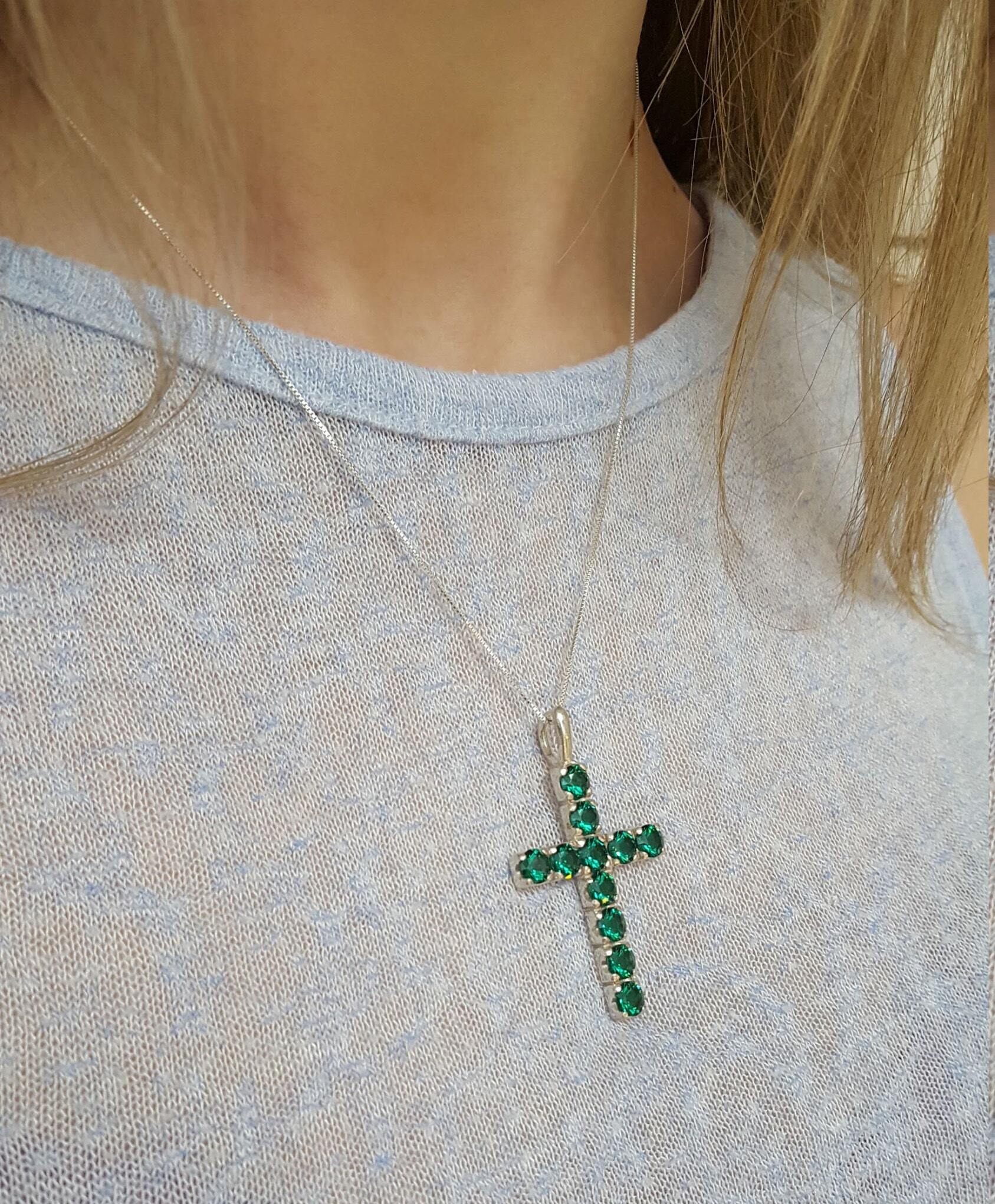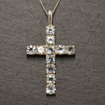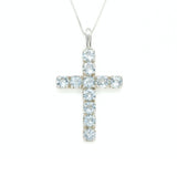 Topaz Cross Necklace set with Natural Blue Topaz in a perfect diamond cut, flawless clarity & natural sky blue color, at 5mm each (6 Cts combined) from Brazil.