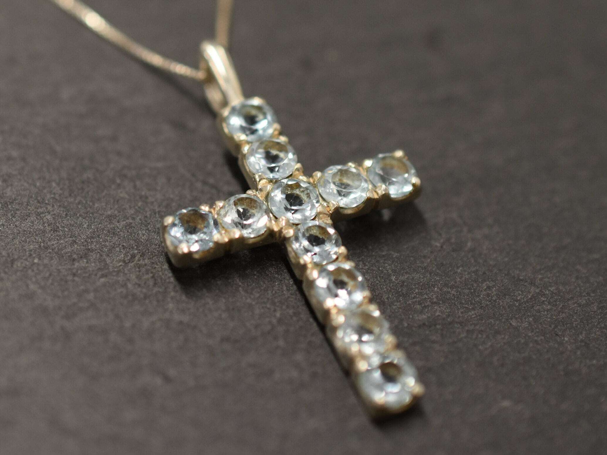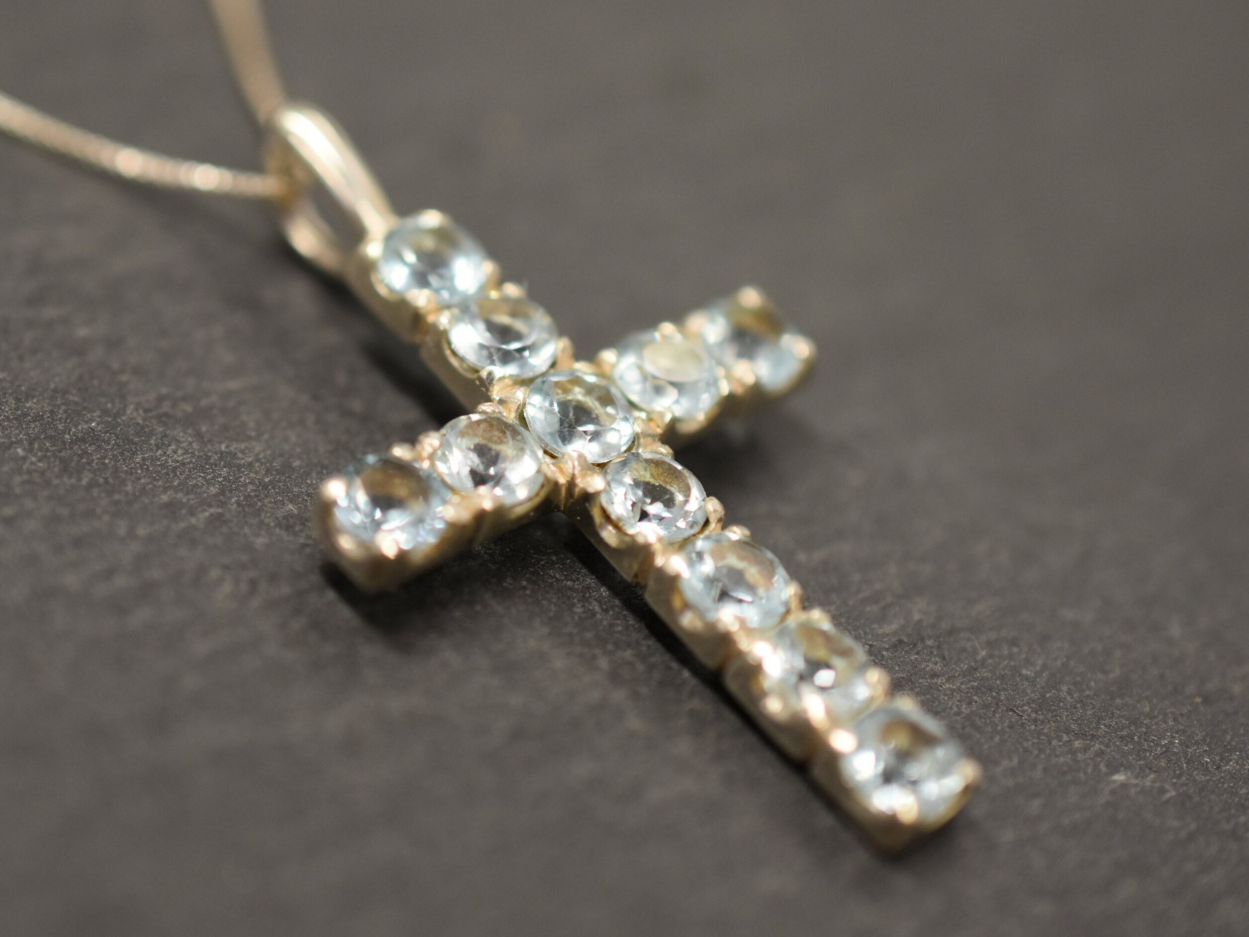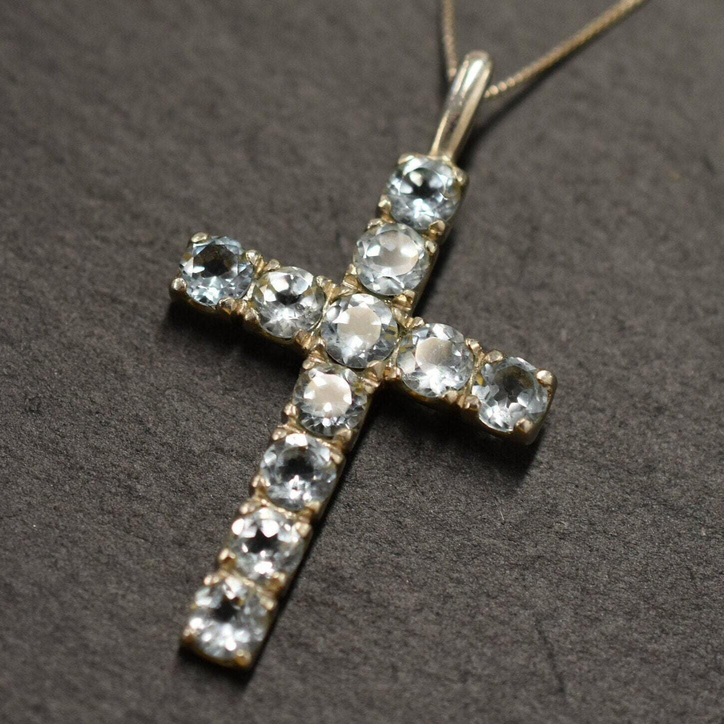 Blue Topaz Pendant, Natural Blue Topaz, Cross Pendant, December Pendant, Topaz Cross Pendant, Symbolic Pendant, Blue Cross, Silver Pendant