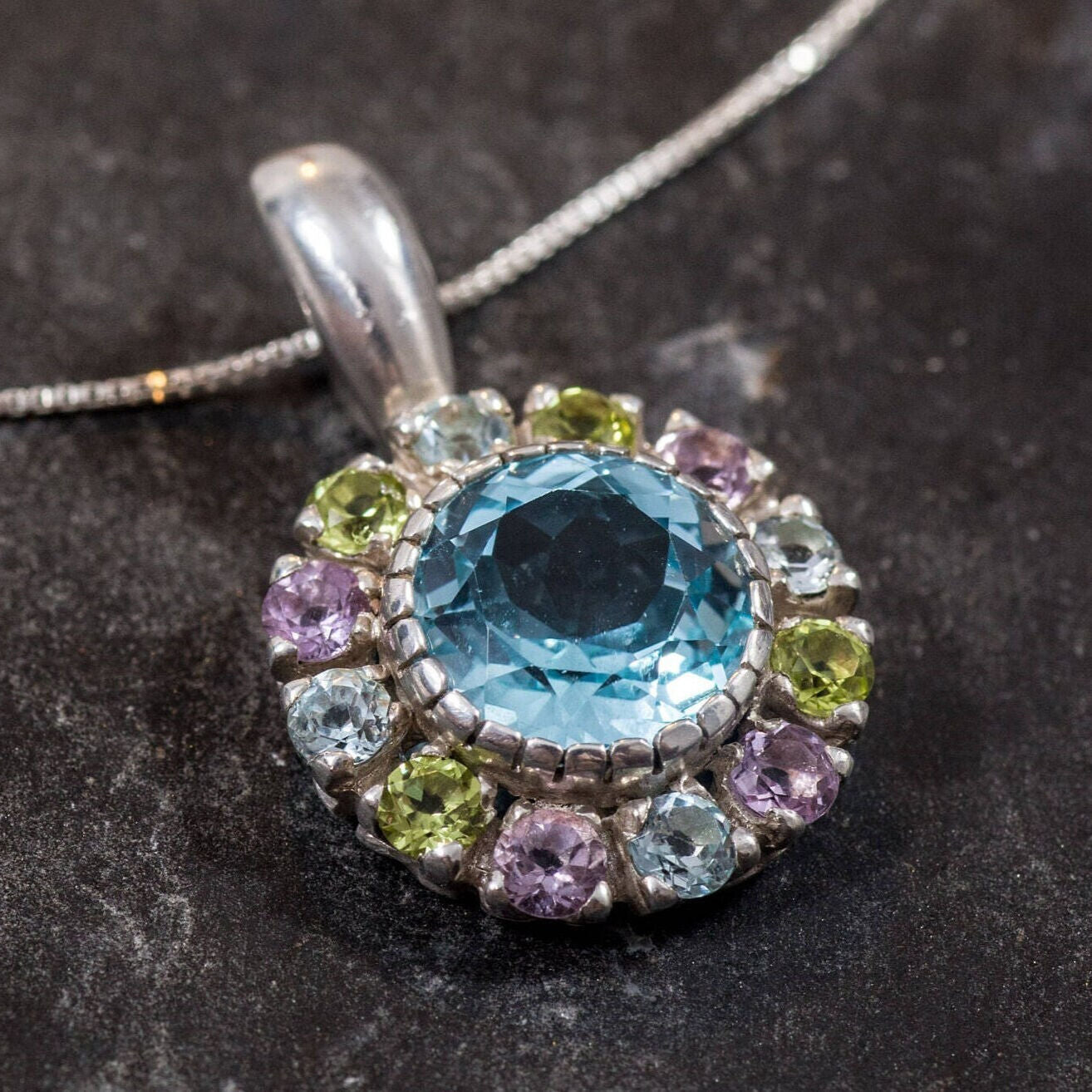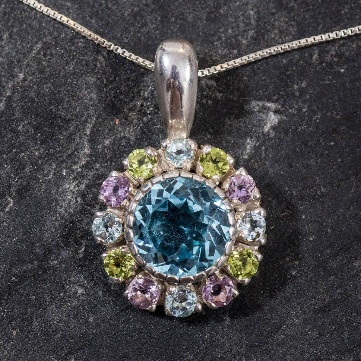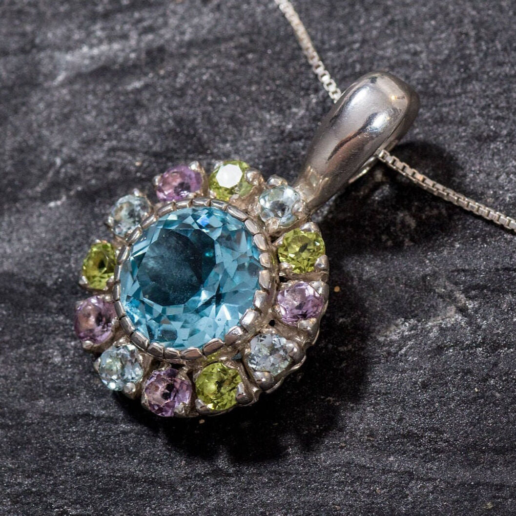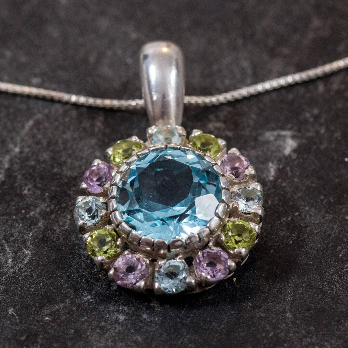 Blue Topaz Pendant, Topaz Pendant, Natural Stones, Natural Topaz, Birthstone Pendant, Vintage Pendant, Amethyst Pendant, Peridot Pendant