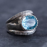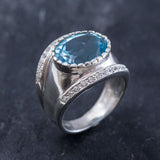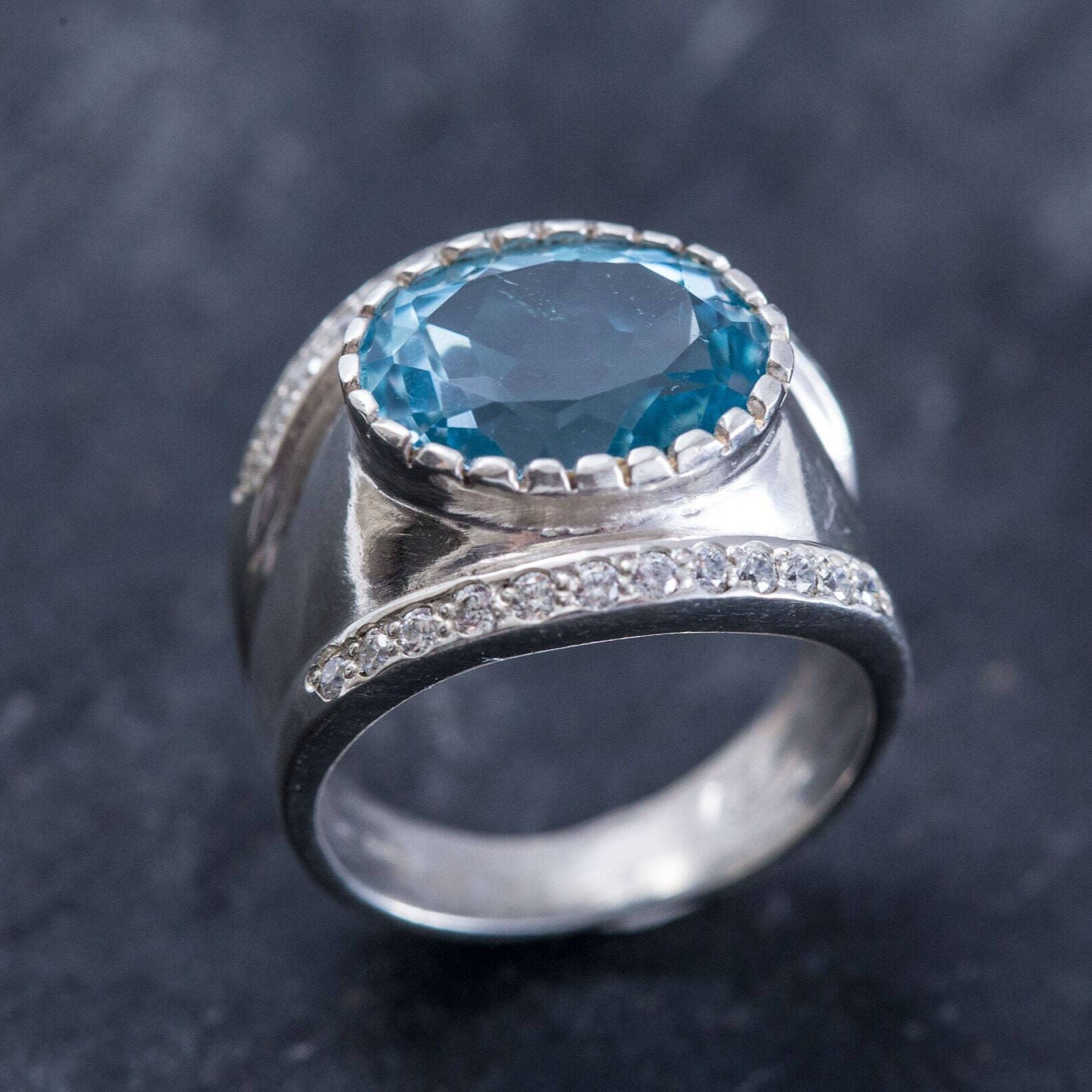 Blue Topaz Ring, Natural Blue Topaz, Vintage Rings, December Birthstone, CZ Diamonds, December Ring, Blue Ring, Solid Silver Ring, Topaz