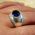 Chunky Blue Topaz Ring - Silver Dome Band - Blue Topaz Bezel Ring