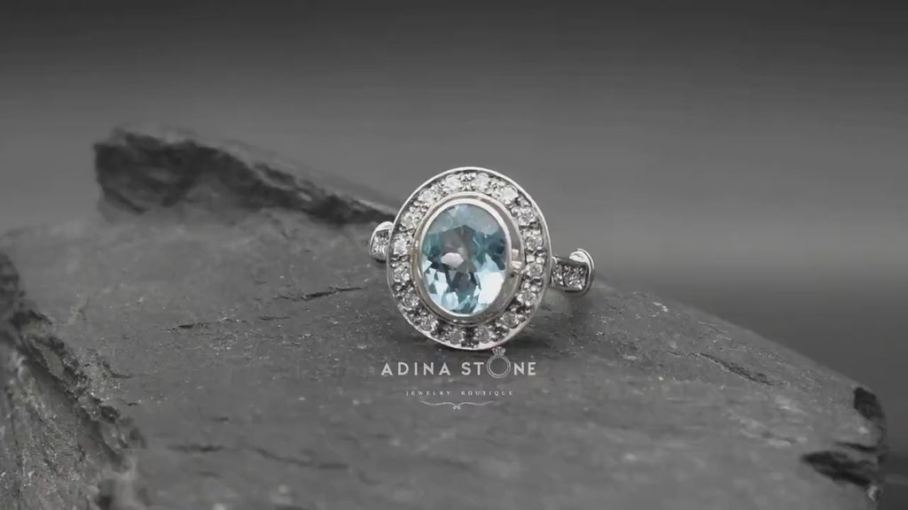 Blue Topaz Victorian Ring - Natural Blue Topaz Ring - December Birthstone Ring