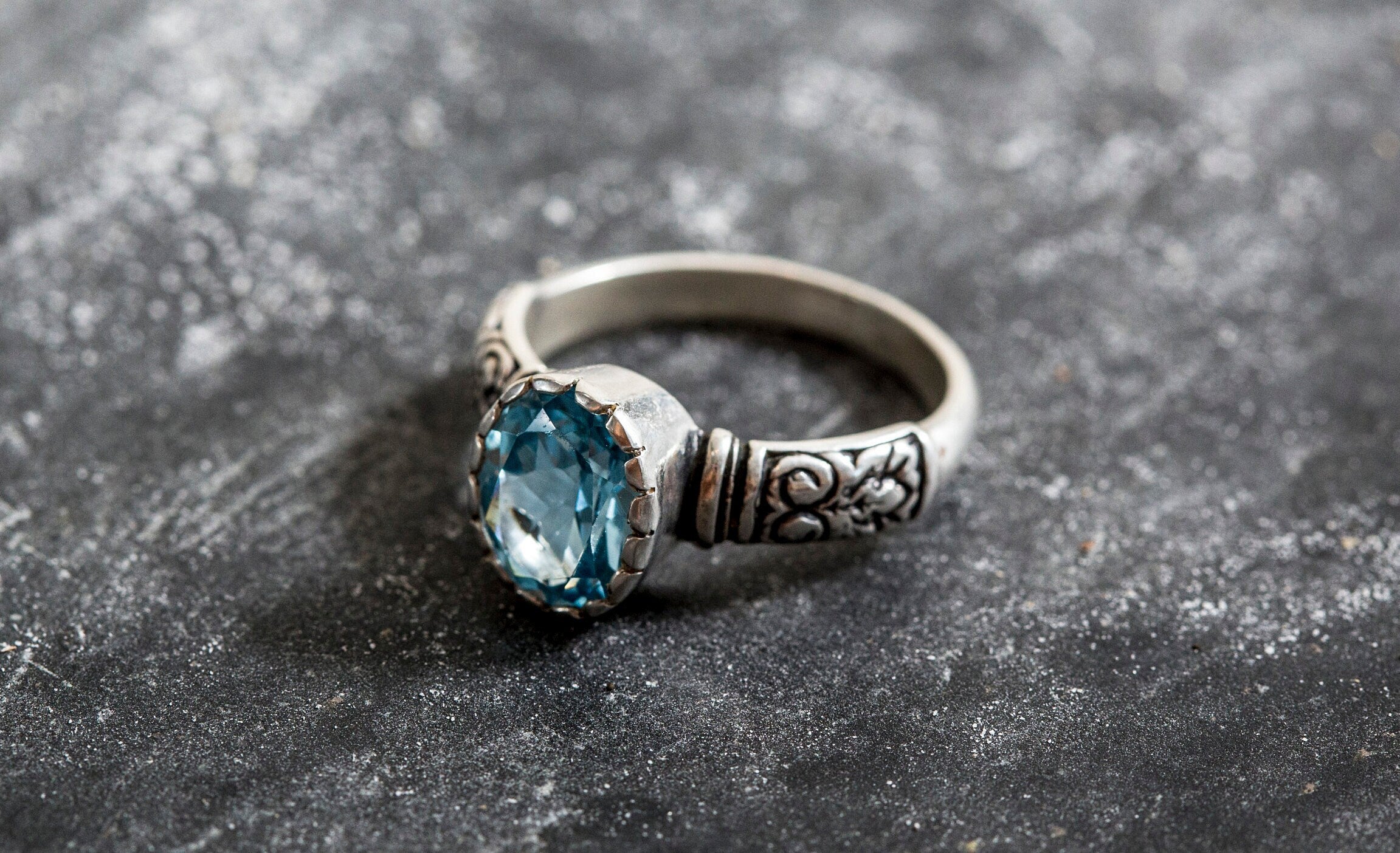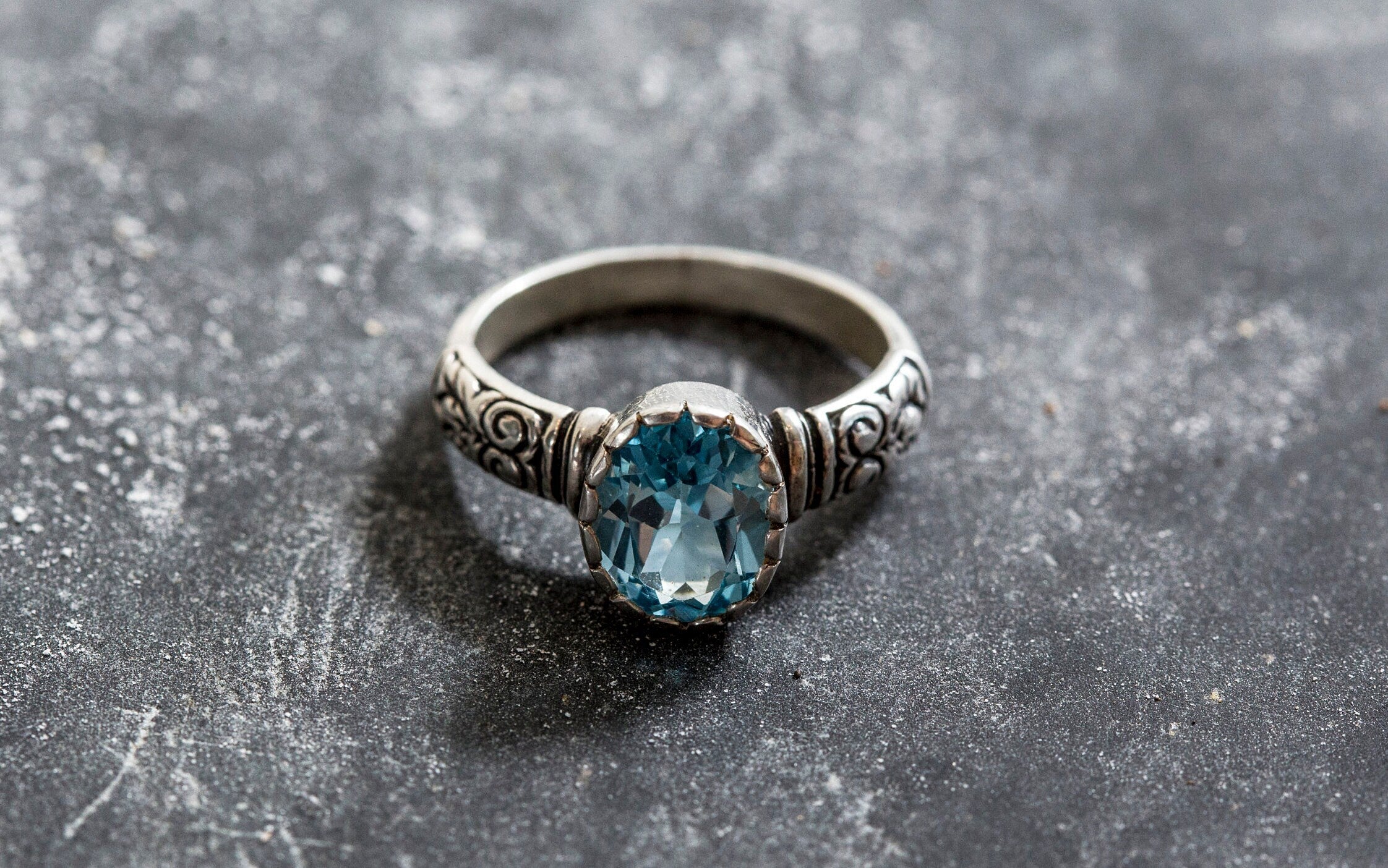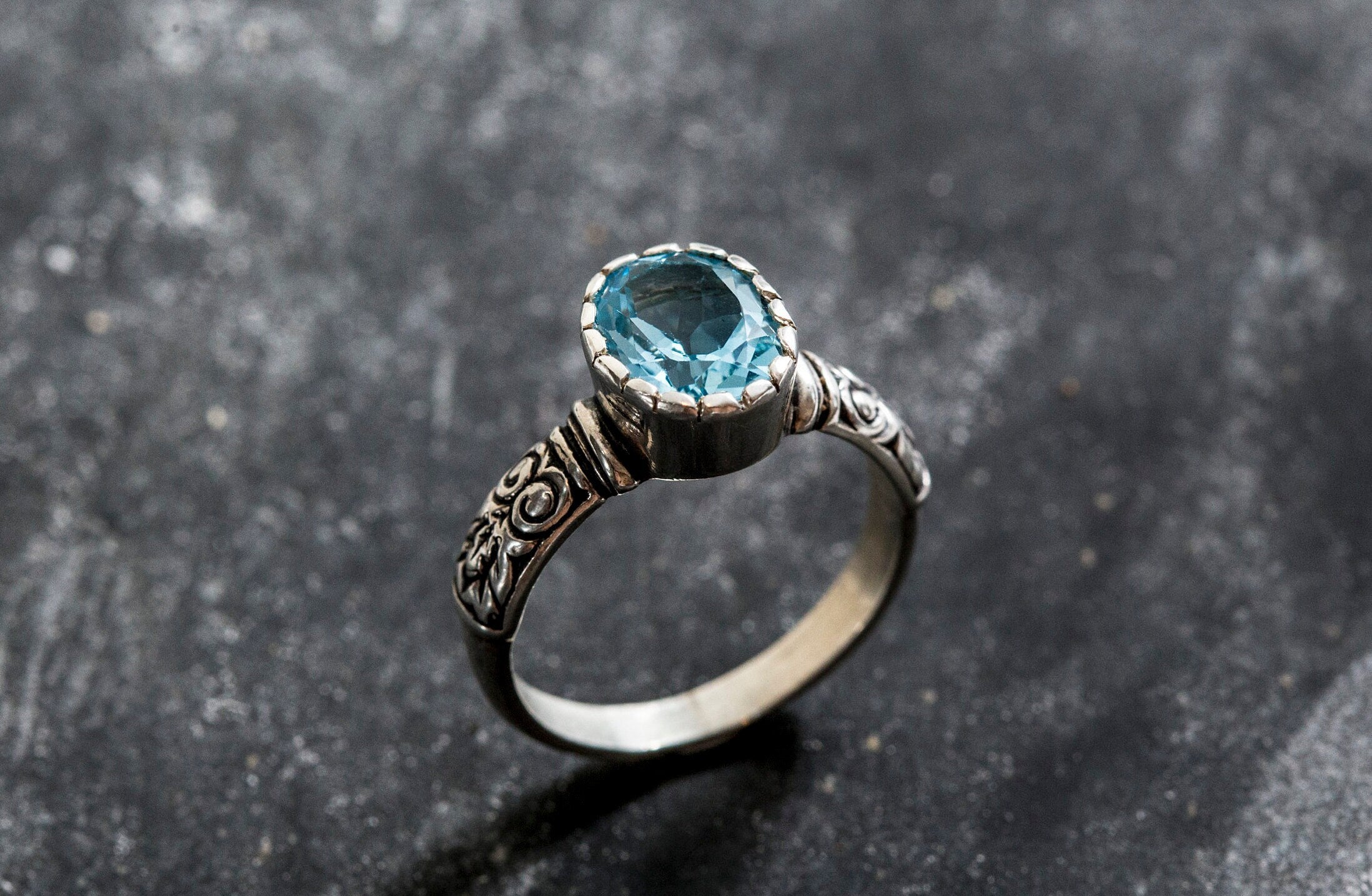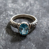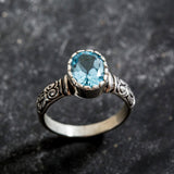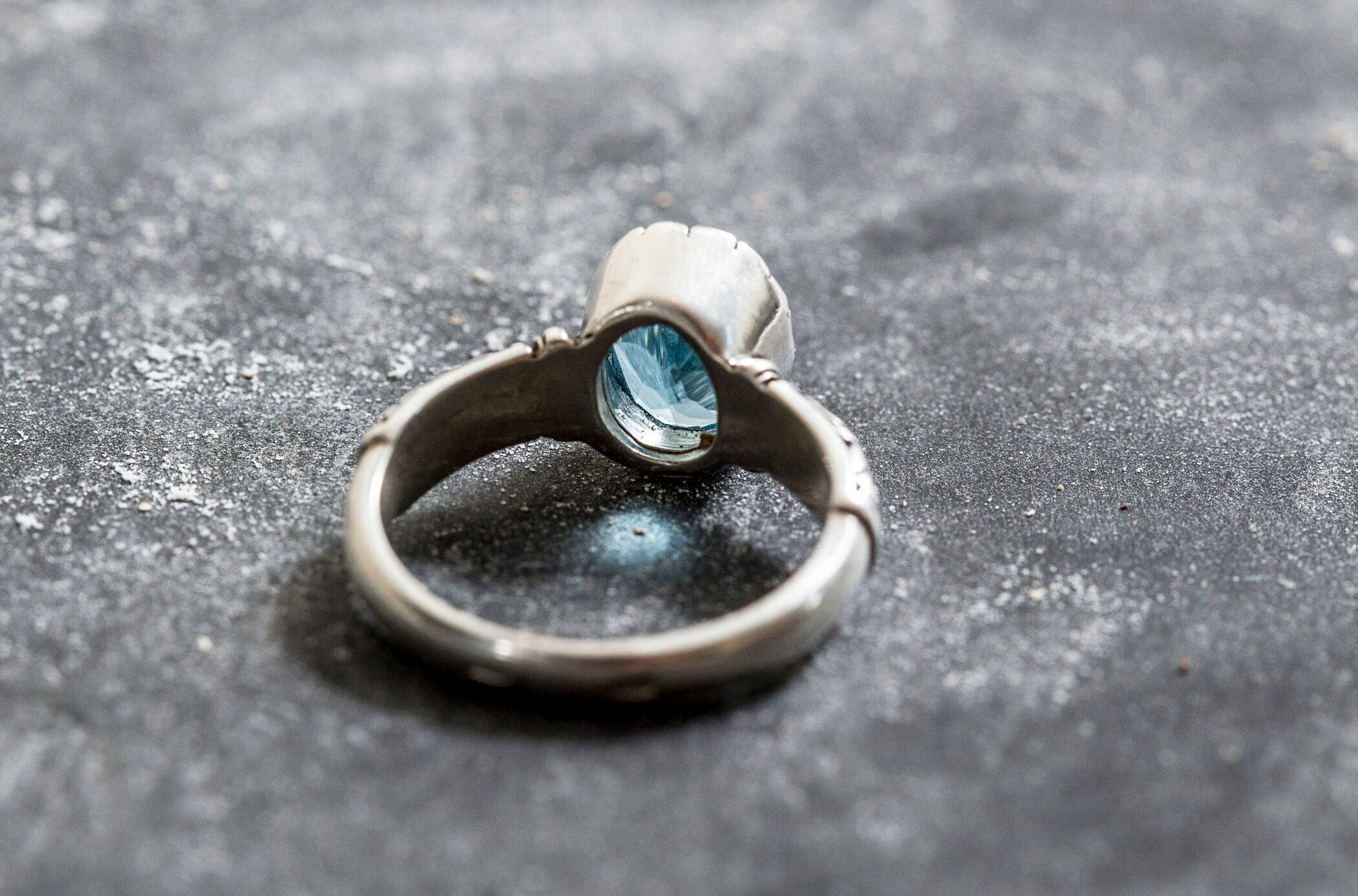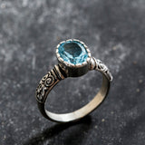 Solitaire Blue Topaz Ring - Blue Topaz Boho Ring - Blue Gemstone Ring