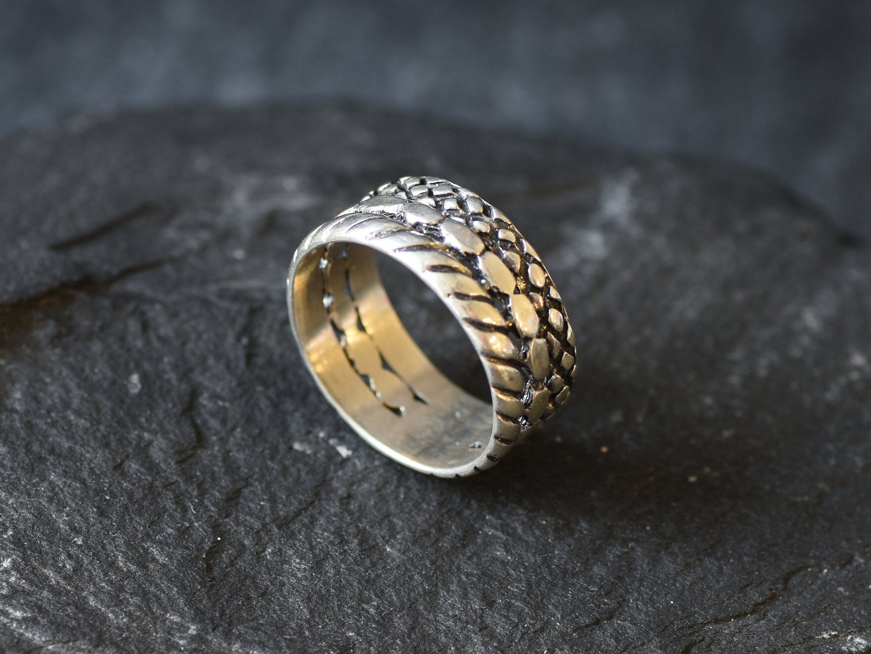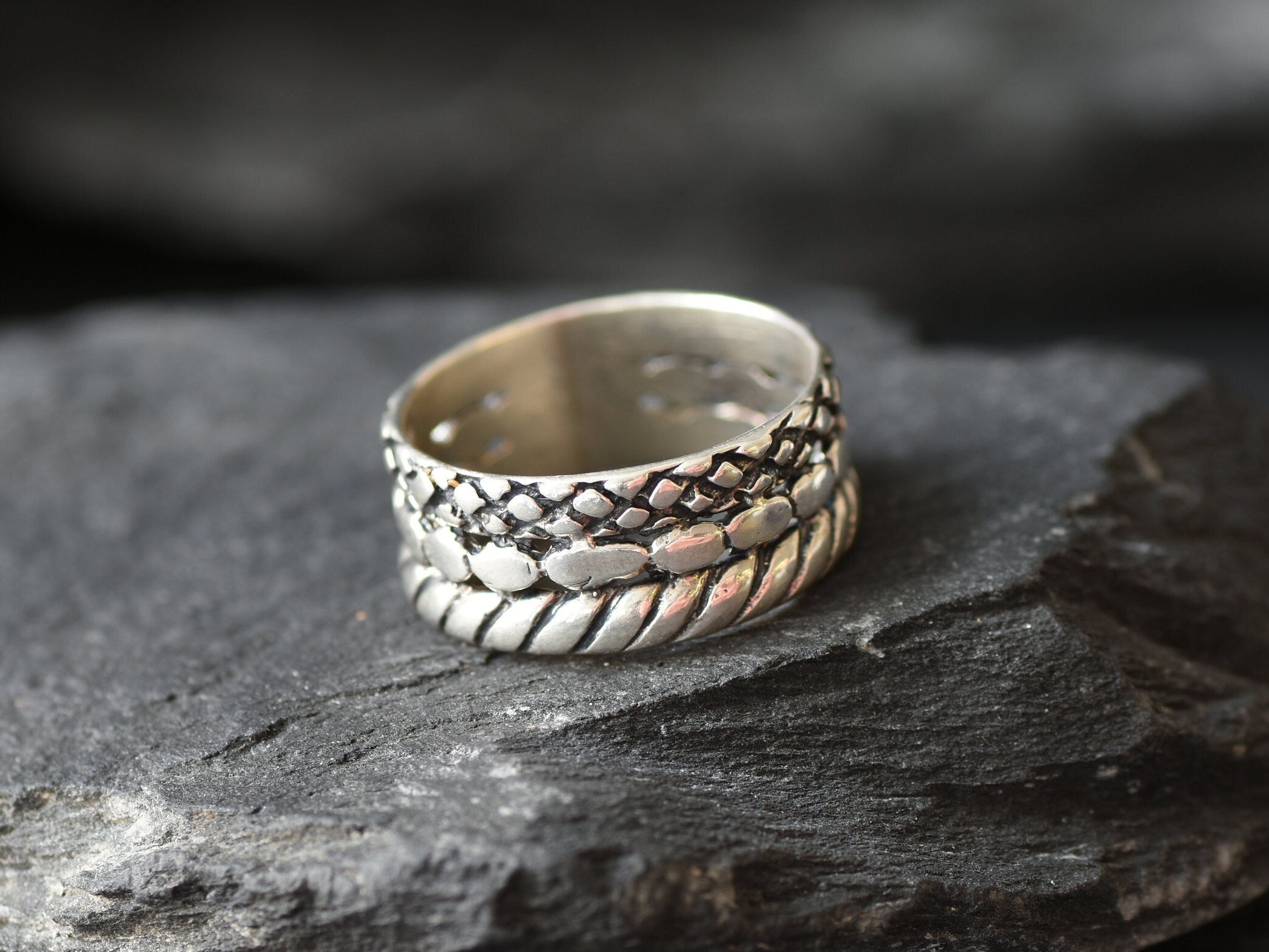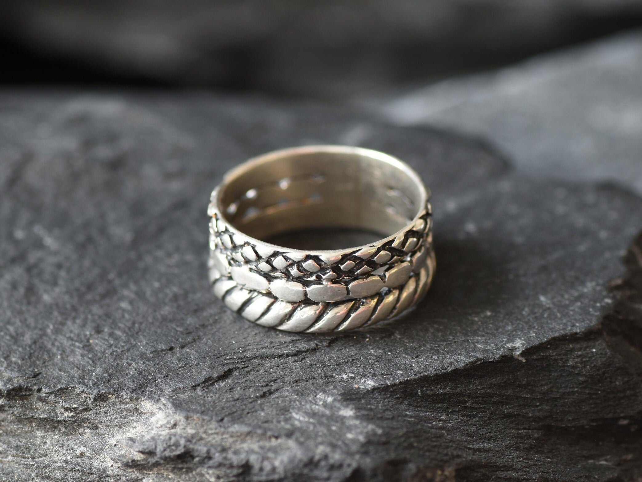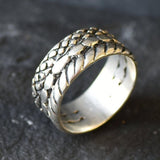 Braided Silver Ring, Unique Silver Ring, Large Silver Ring, Wide Silver Ring, Statement Ring, Silver Engraved Ring, Layered Ring, 925 Silver
