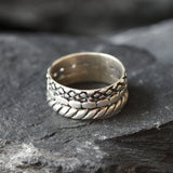 Triple Band Ring - Silver Textured Ring - Wide Band Ring