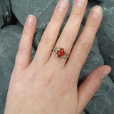 Red Flower Ring, Natural Red Agate, Carnelian Ring, Leaf Ring, Branch Ring, Red Vintage Ring, Floral Ring, Red Oval Ring, Solid Silver Ring