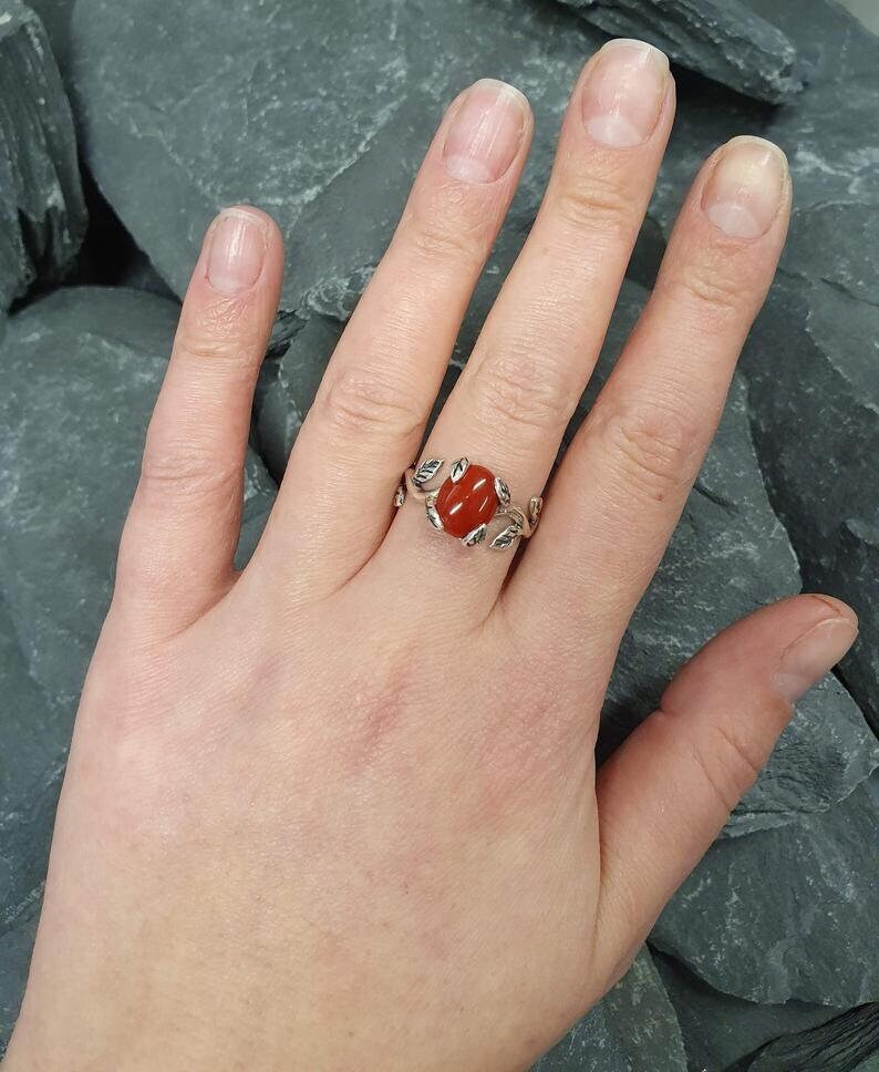 Red Flower Ring, Natural Red Agate, Carnelian Ring, Leaf Ring, Branch Ring, Red Vintage Ring, Floral Ring, Red Oval Ring, Solid Silver Ring(1)