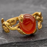 Carnelian Ring - Red Branch Ring - Olive Leaf Ring