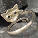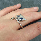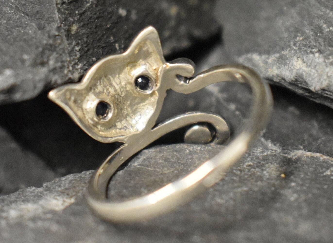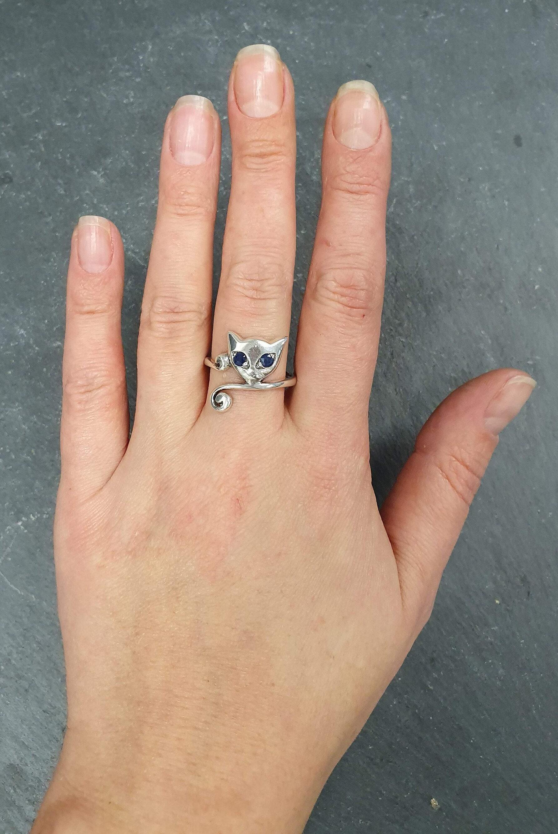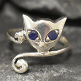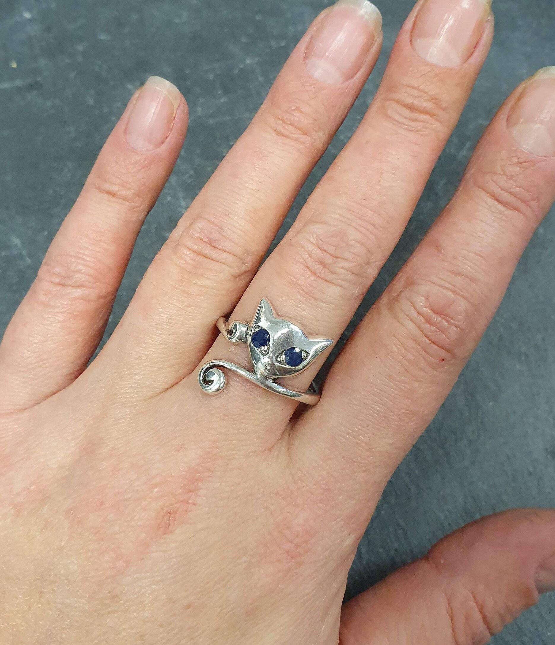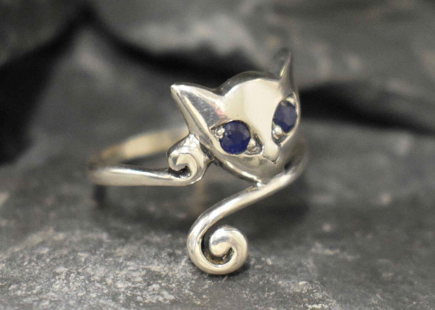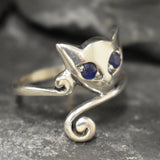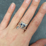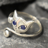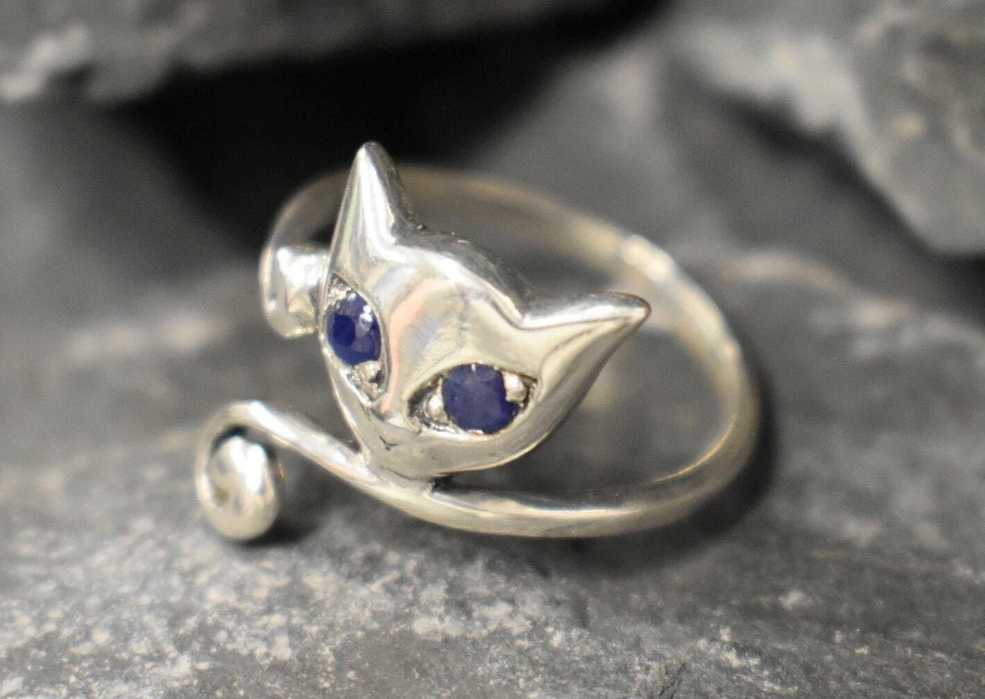Cat Silver Ring - Natural Sapphire Ring - September Birthstone Ring