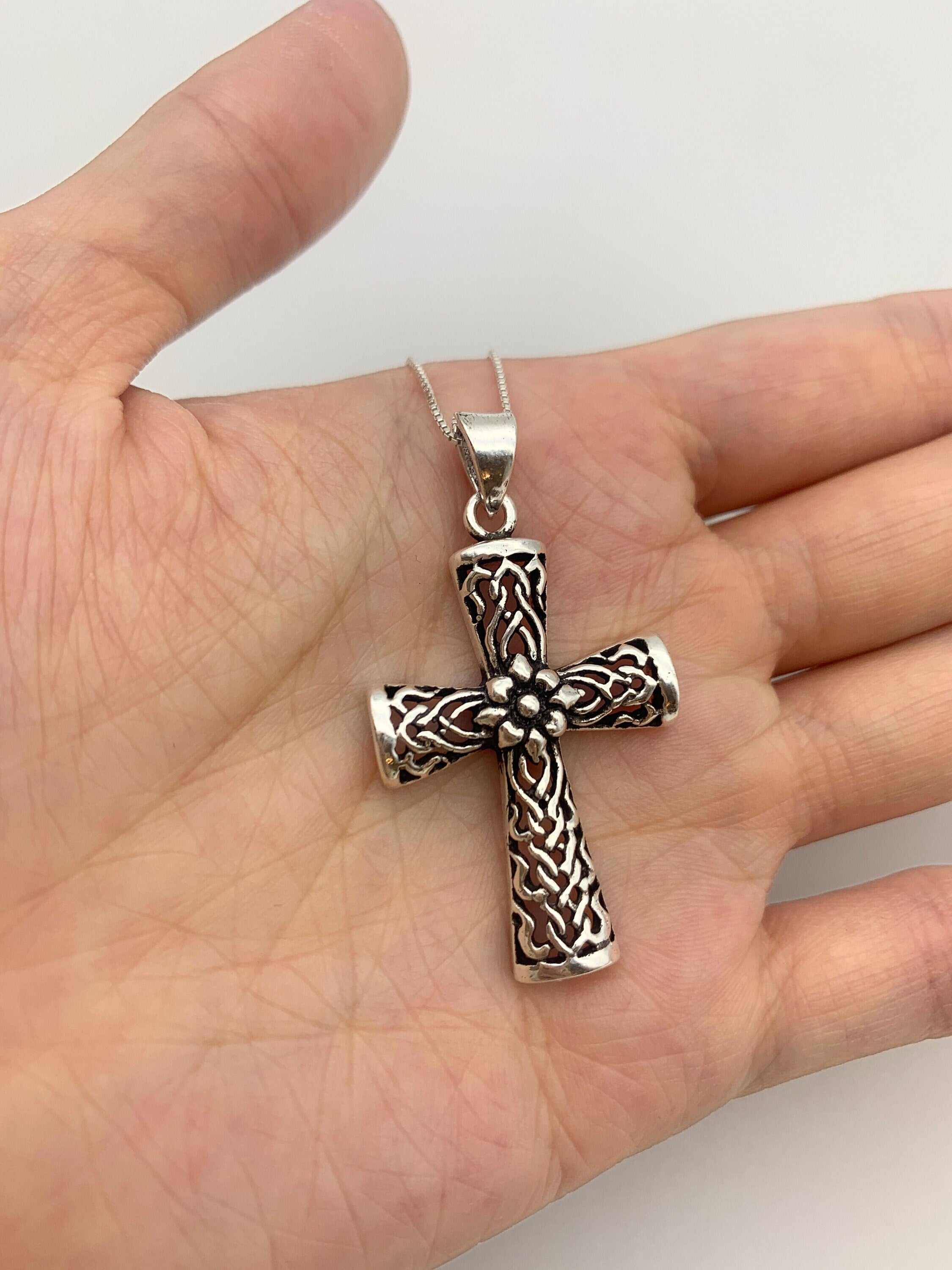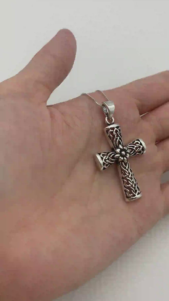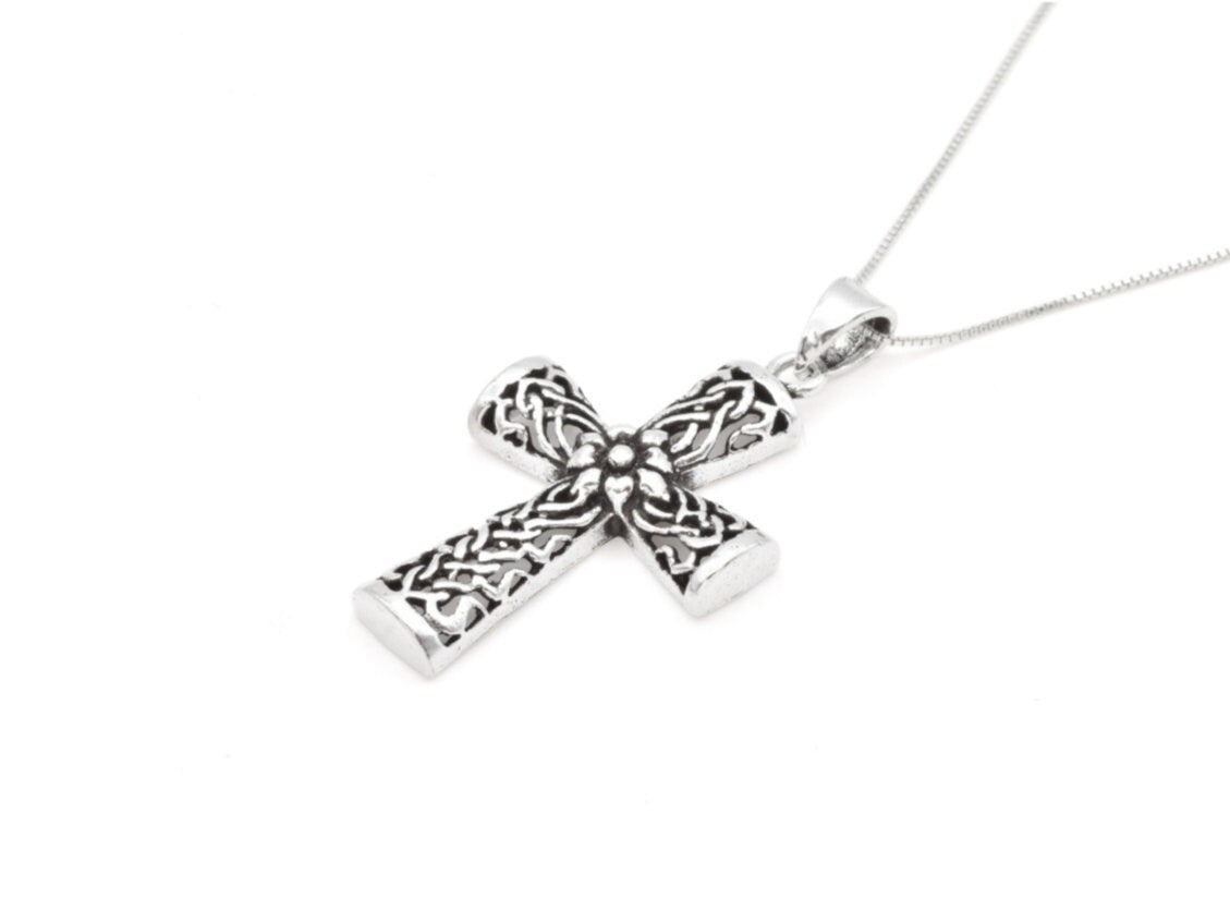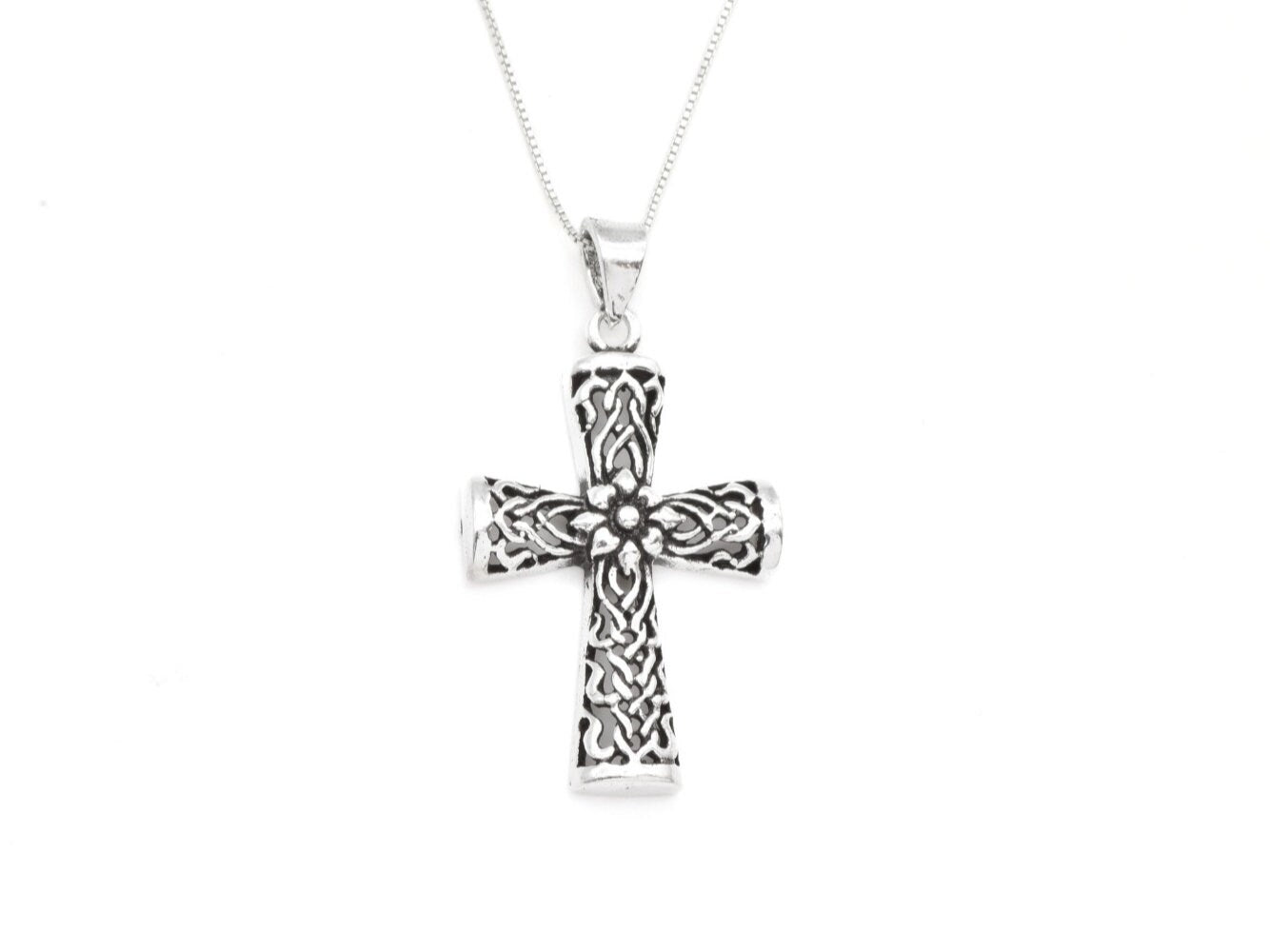 Celtic Cross Pendant - Floral Cross Pendant - Silver Cross Pendant