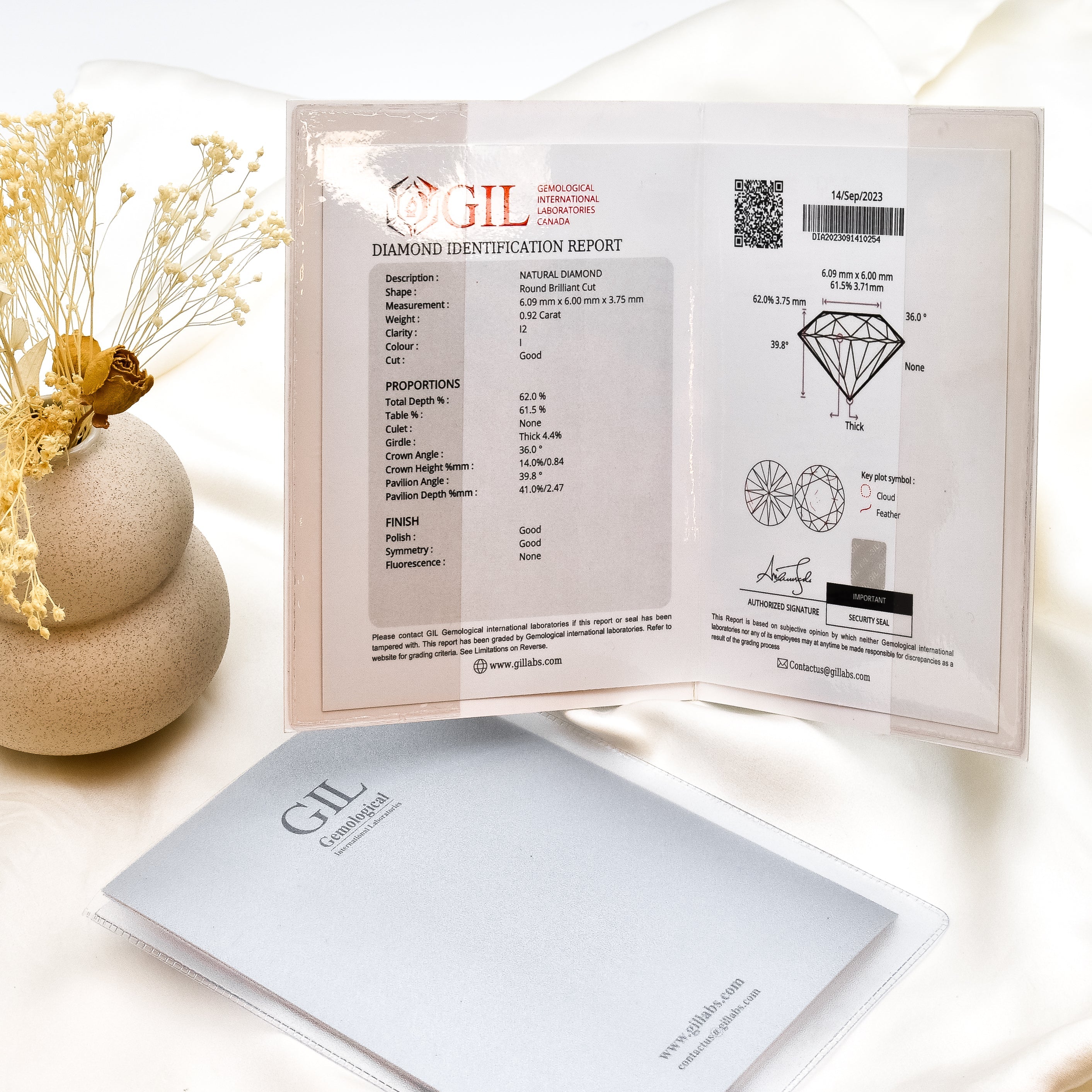 Certified Diamond Engagement Ring set with a Natural Diamond, size 6 millimeters diameter each, 0.92 Carat