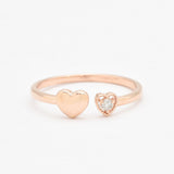 Certified Real Diamond Open Heart Ring - Real 14k Rose Gold Diamond Ring - Dainty Brilliant Solid Gold Ring