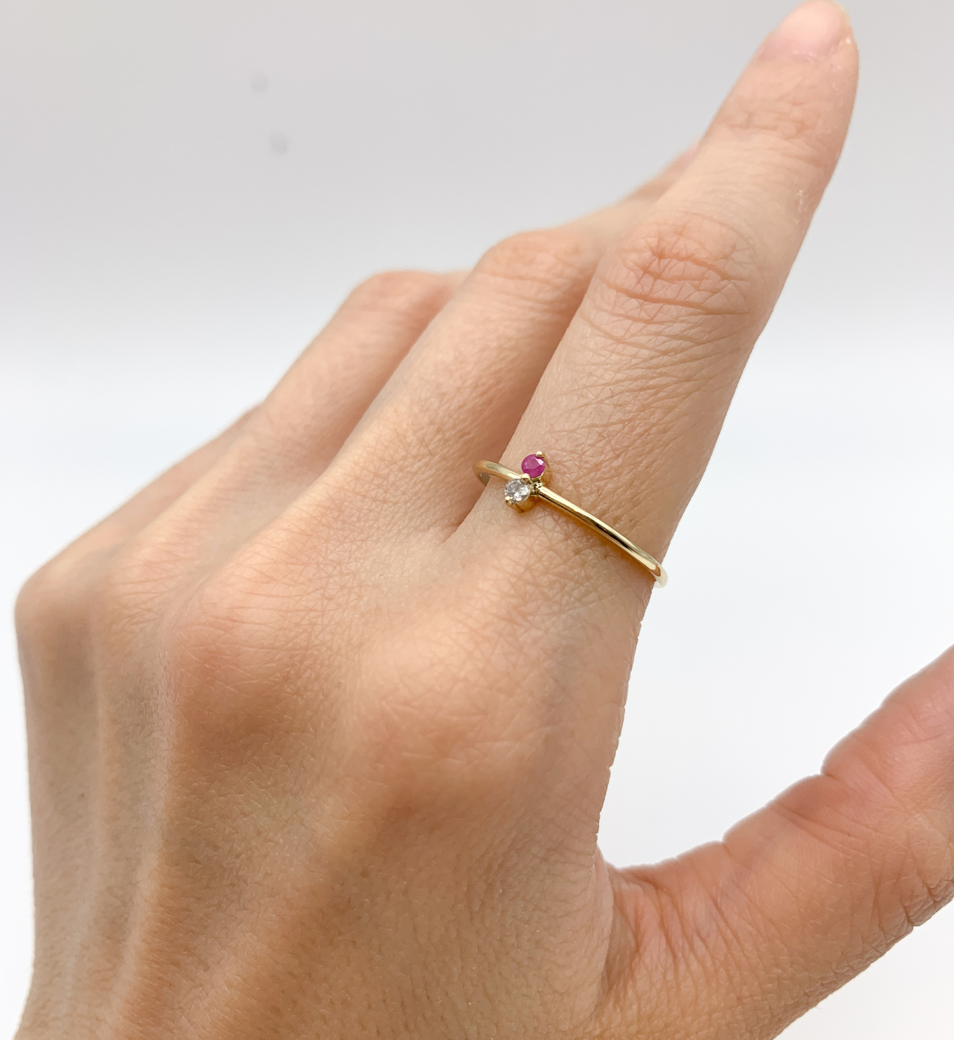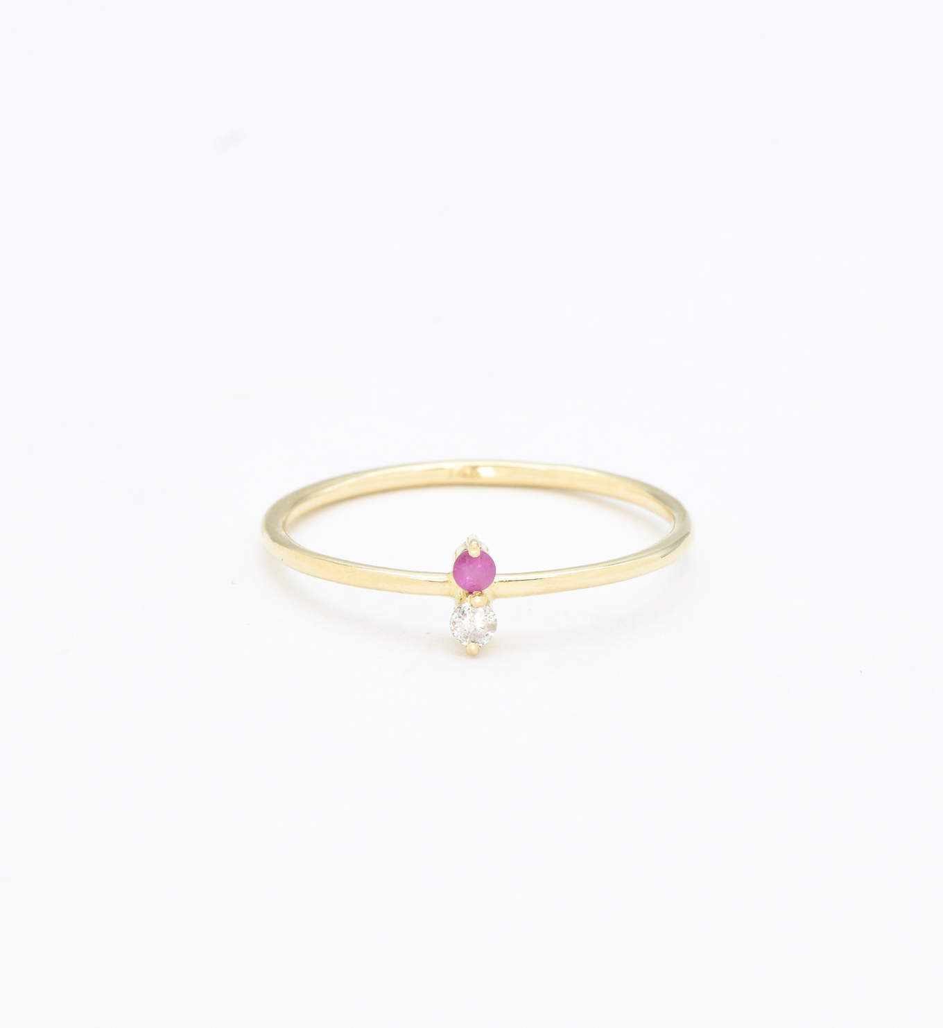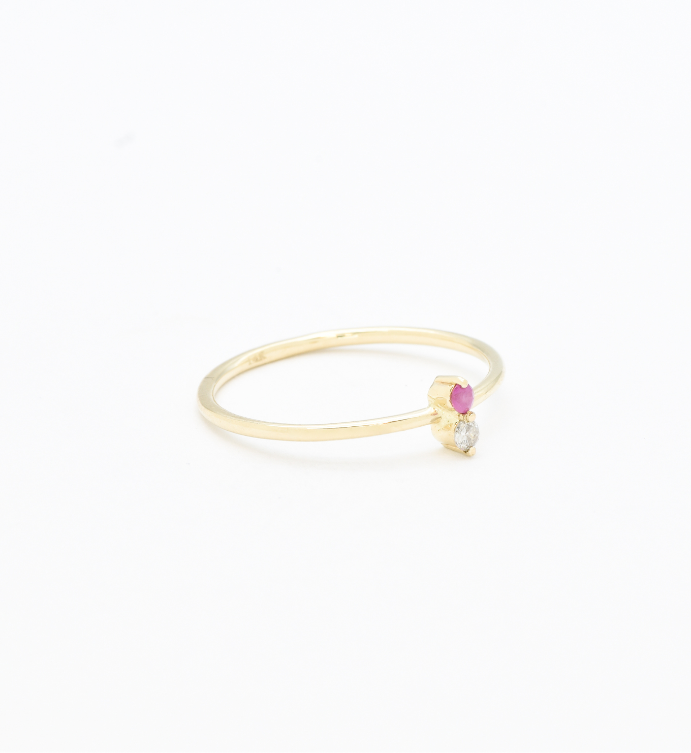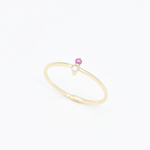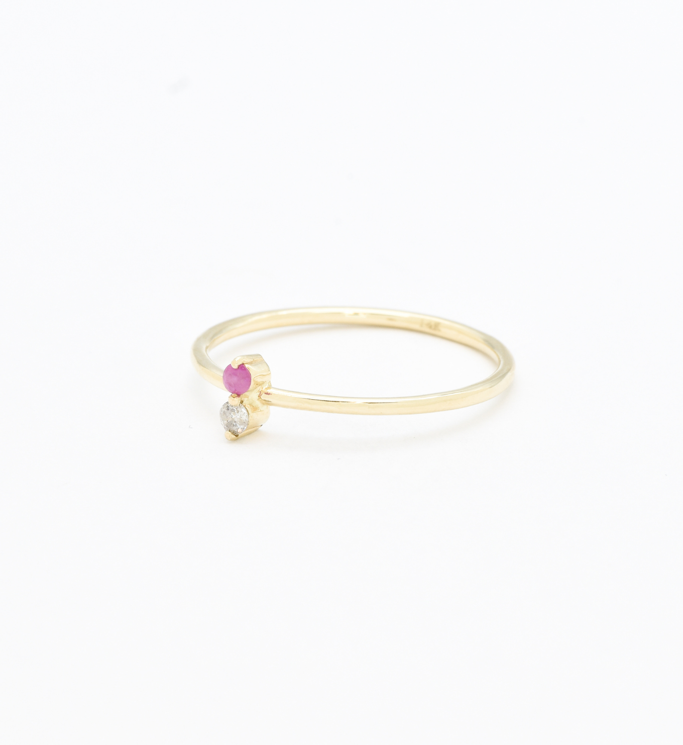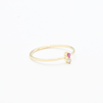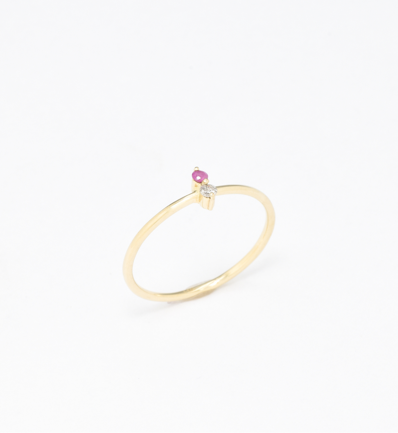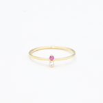 Certified Diamond Ring set with a Natural Diamond & Natural Ruby, size 2 millimeters diameter each, 0.03 Carat each