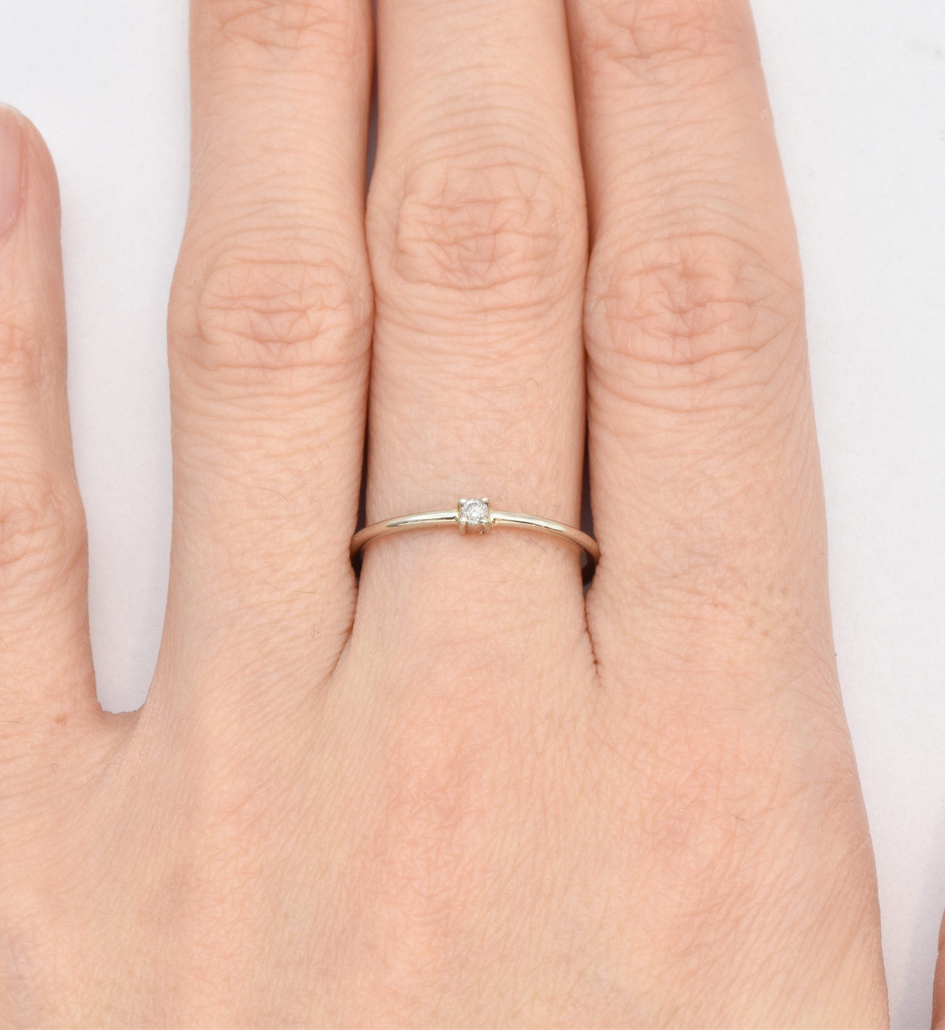 Real Diamond Ring set with Natural Diamond, size 2 millimeters diameter, 0.03 Carats.