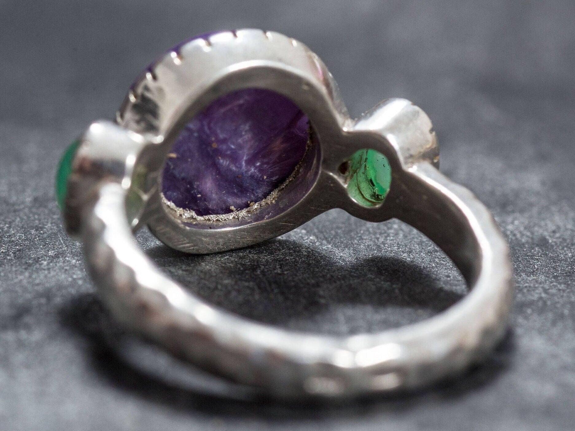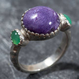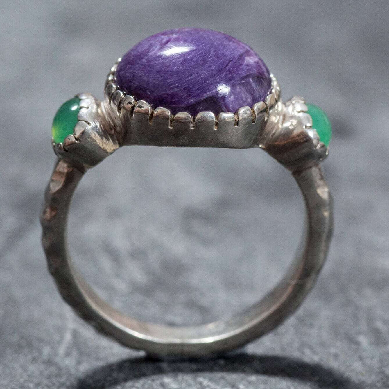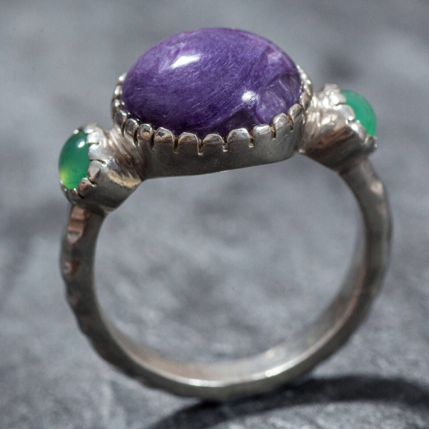 Charoite Ring, Chrysoprase Ring, Natural Chrysoprase, Charoite Ring, Charoite, Purple Ring, Purple Stone, Vintage Ring, Purple Stone Ring
