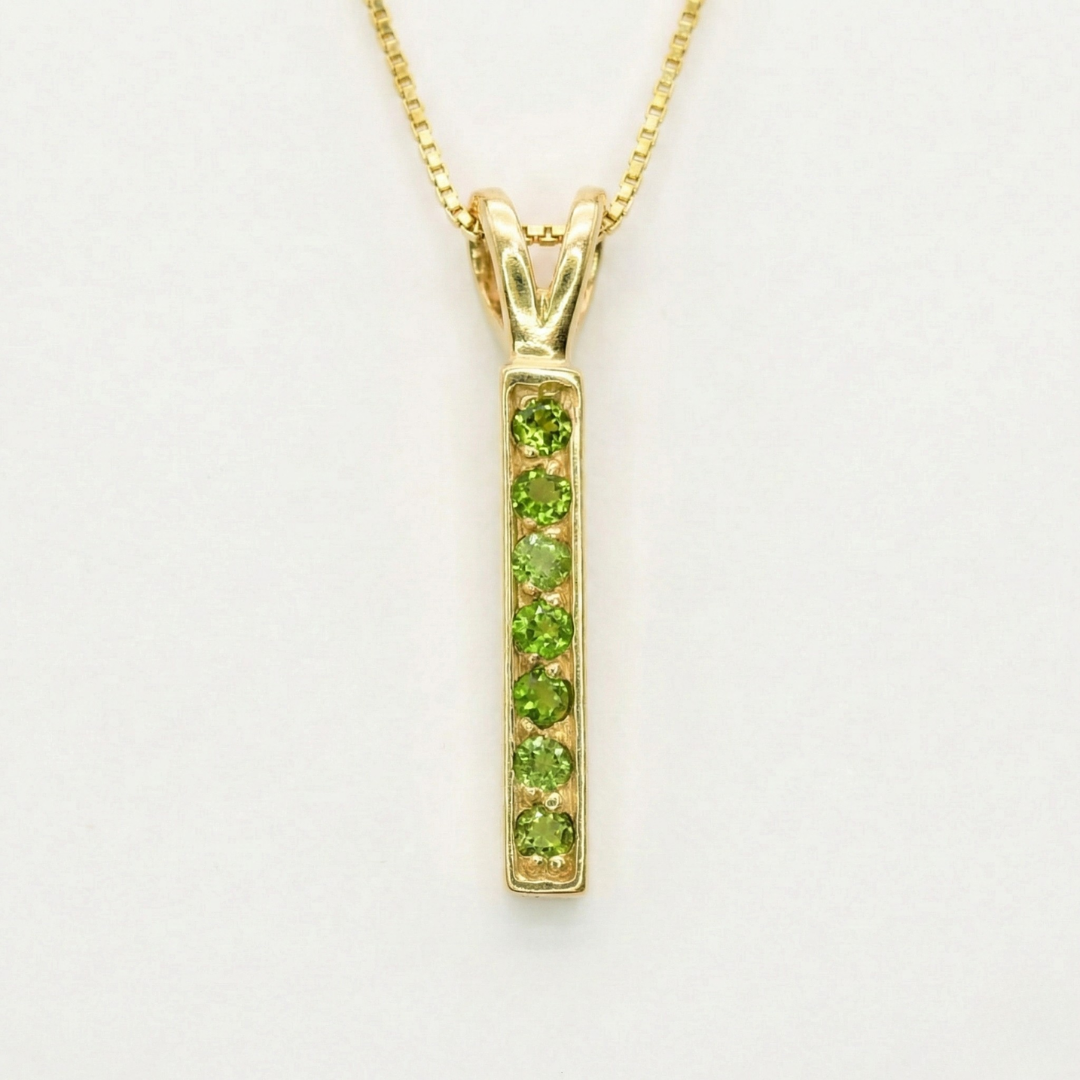 Chrome Diopside Pendant - Gold Vertical Necklace - Green Bar Necklace