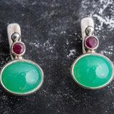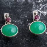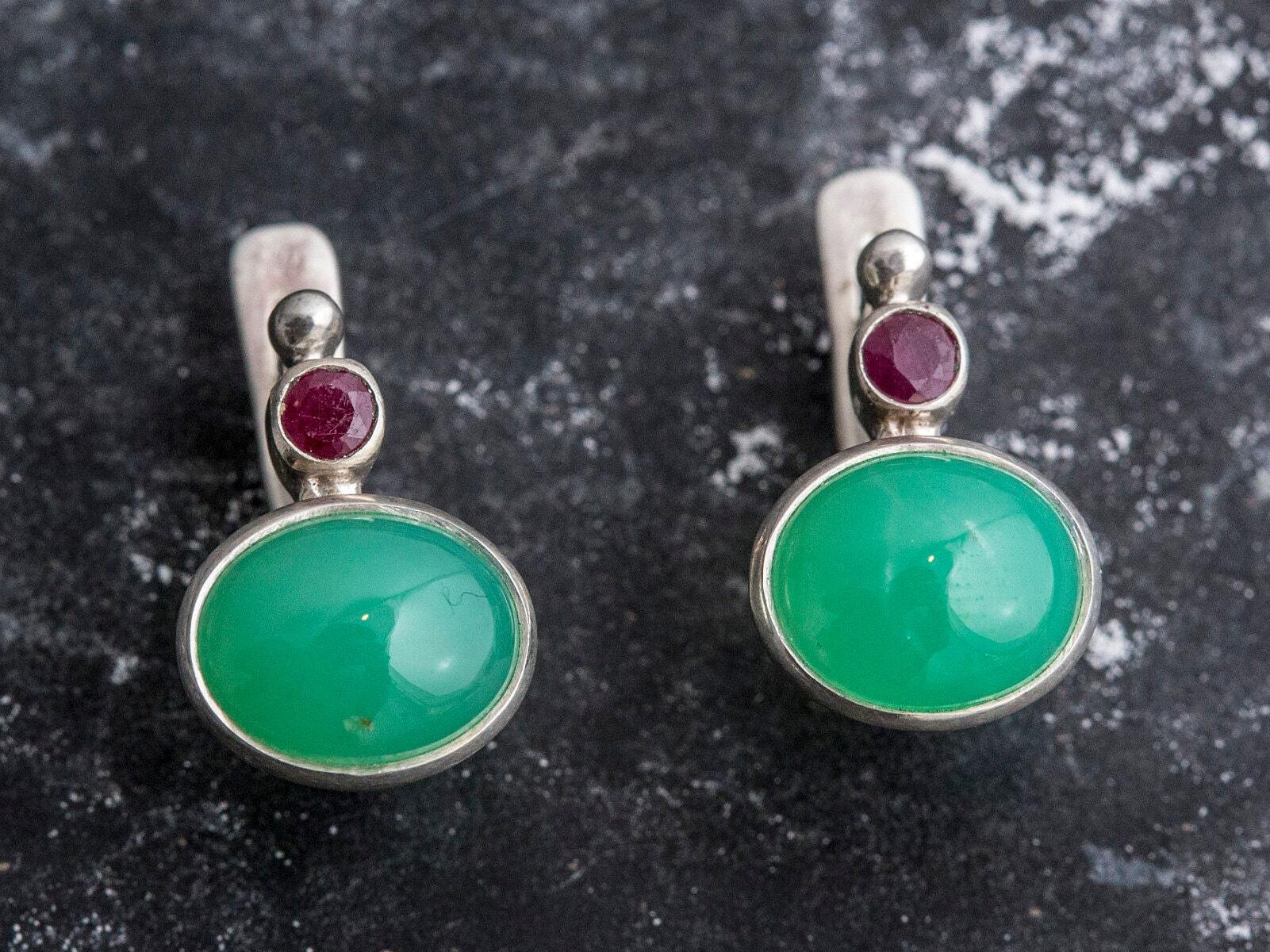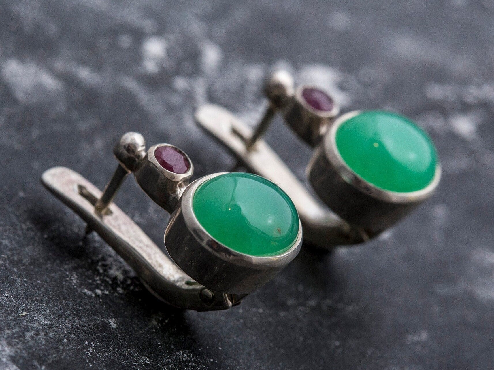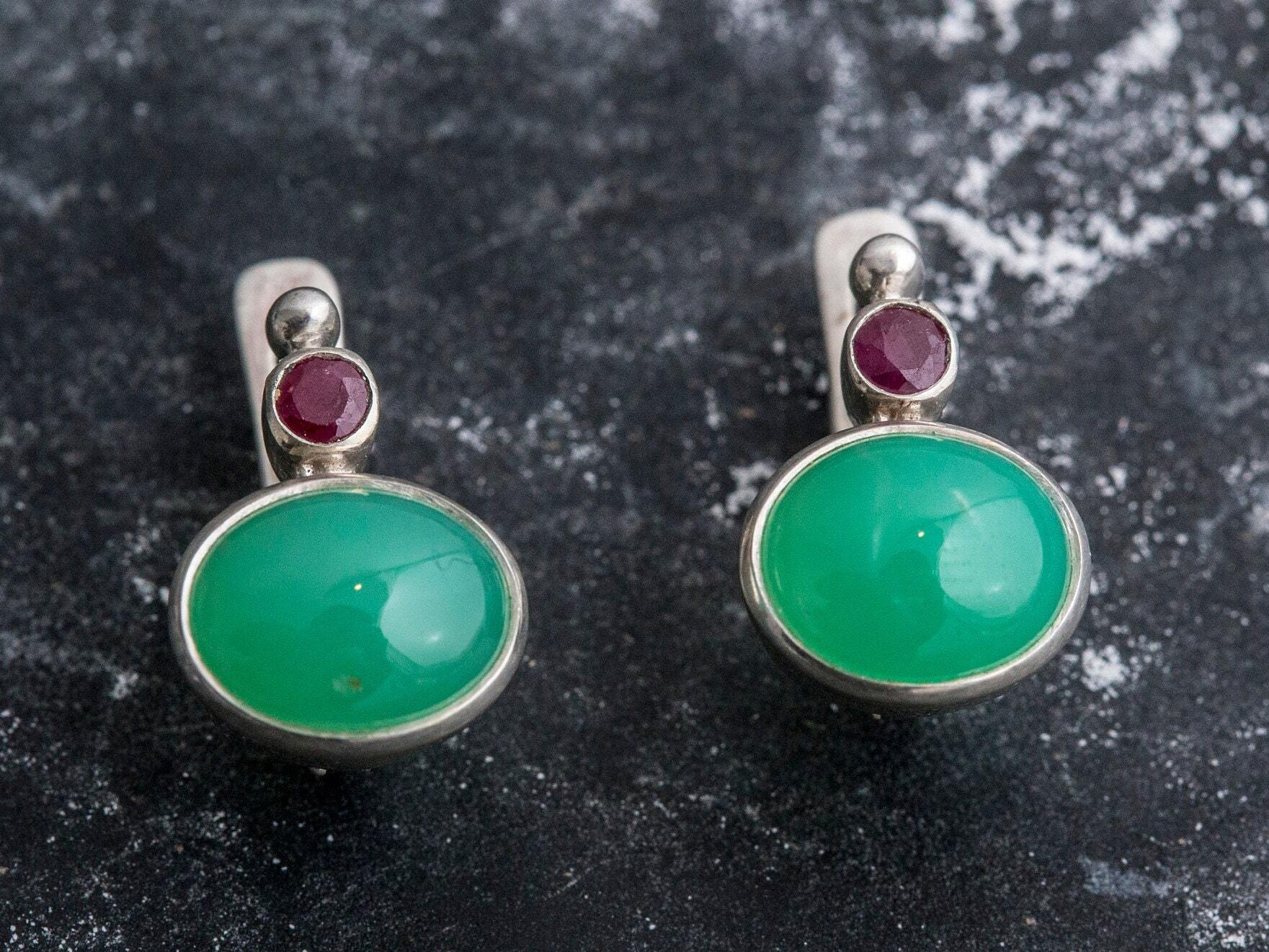 Chrysoprase Earrings, Natural Chrysoprase, Natural Ruby, May Birthstone, Green Earrings, Unique Earrings, Oval Earrings, Genuine Stone, Gift